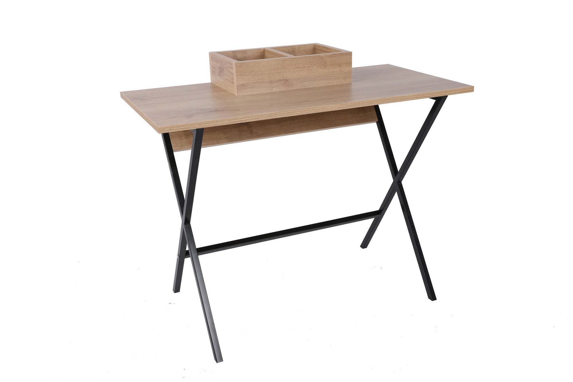 Secretária p/ PC 80x40x72 cm MDF e metal preto/carvalho-claro