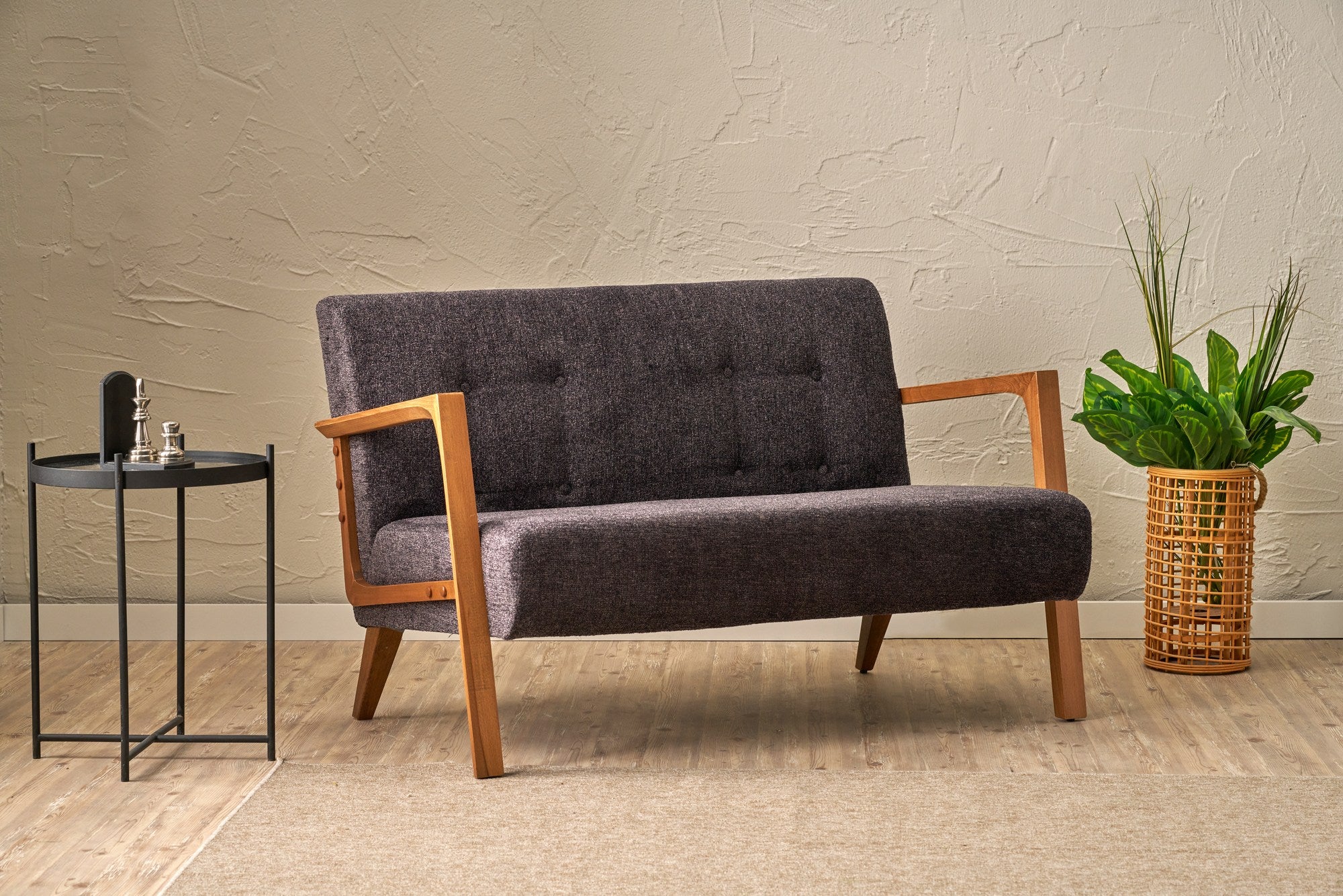 Sofá de 2 lugares – 114 x 85 x 80 cm – Antracite – Madeira de faia e tecido 100% poliéster