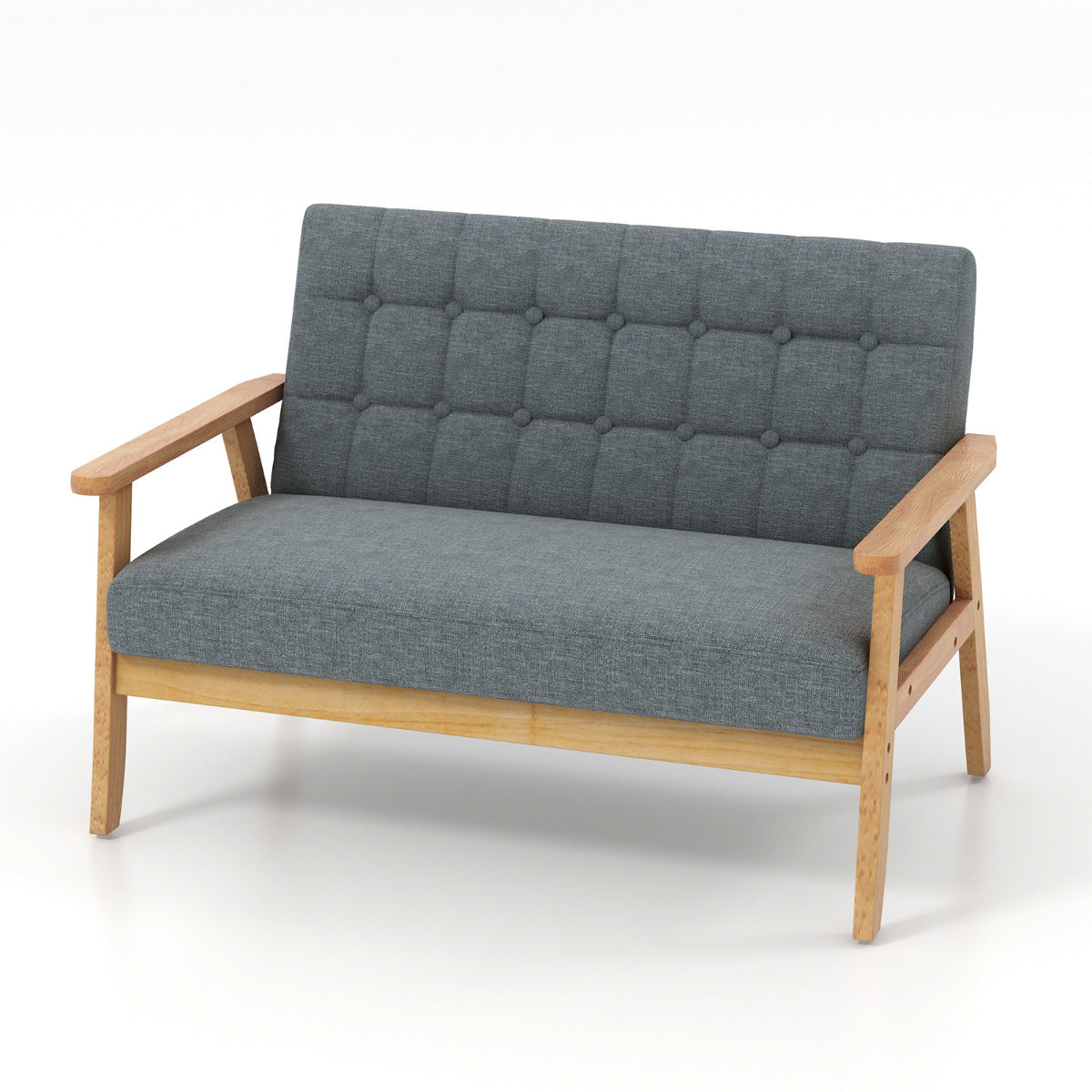 Sofá de Sala de 2 Lugares – 72 x 114 x 77 cm – Cinzento – Tecido de Linho e Madeira de Borracha