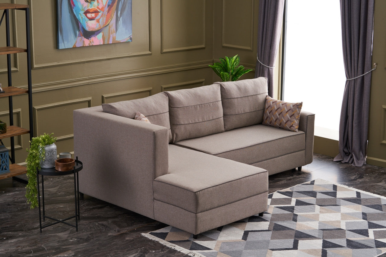 Sofá-cama de canto moderno, marrom, 315 cm | Estrutura em madeira de abeto e MDF, 100% poliéster, fácil de limpar | Tamanho da cama: 200 x 150 cm, design escandinavo elegante