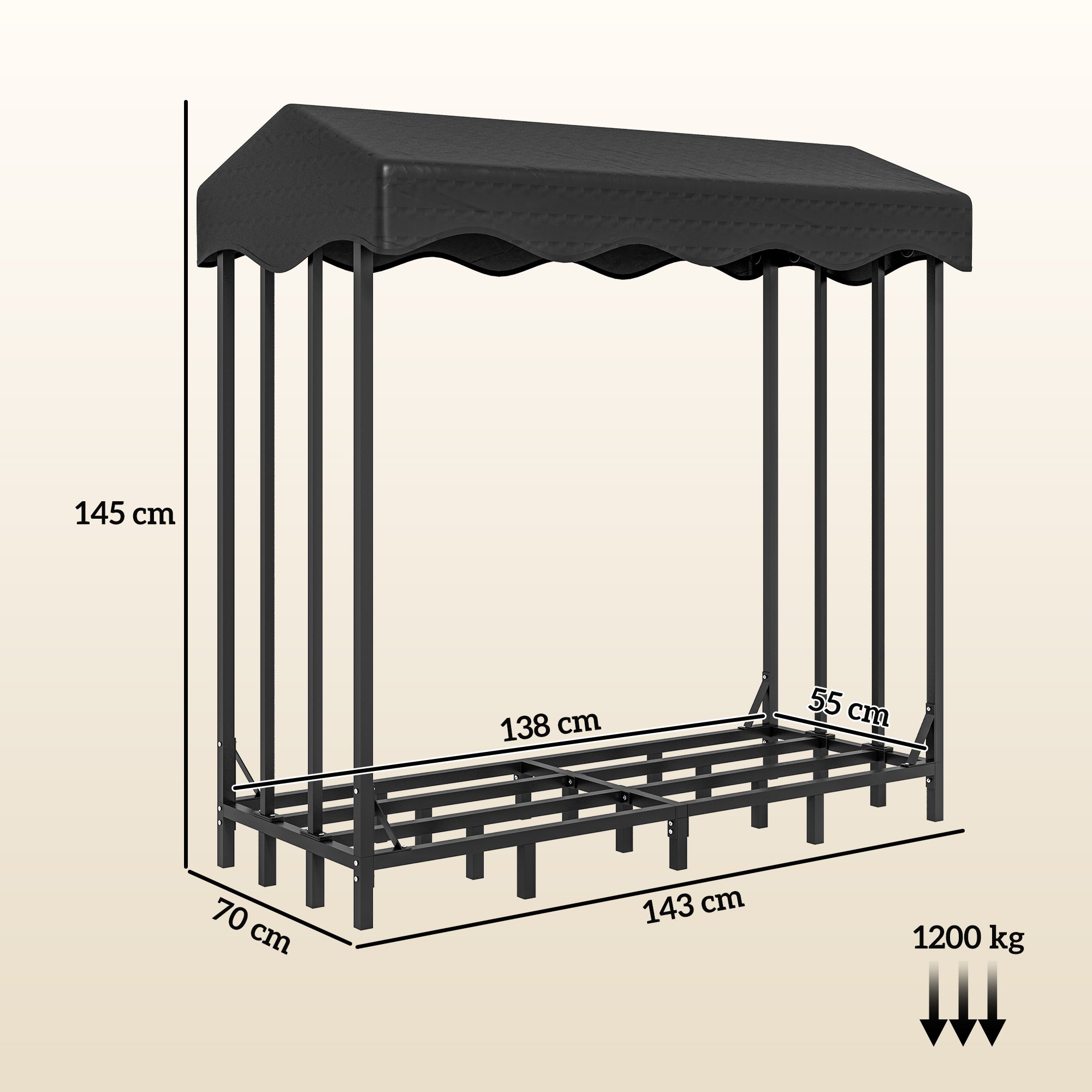 Suporte para Lenha Preto 143x70x145 cm - Armazenamento 1200 kg