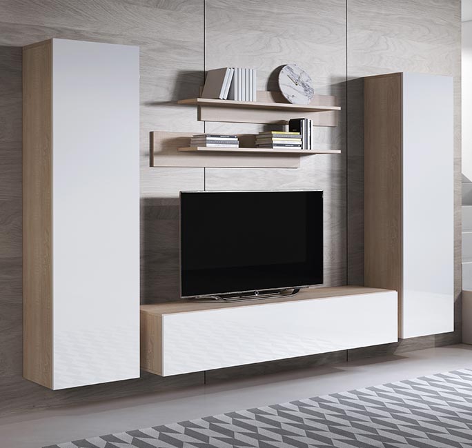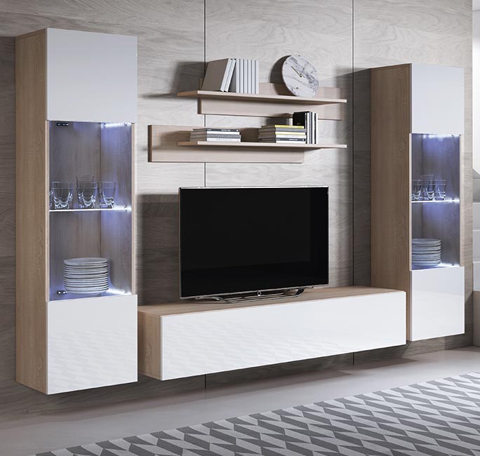 Conjunto de Móveis de Sala – 2,6m – Carvalho Sonoma e Branco – Melamina