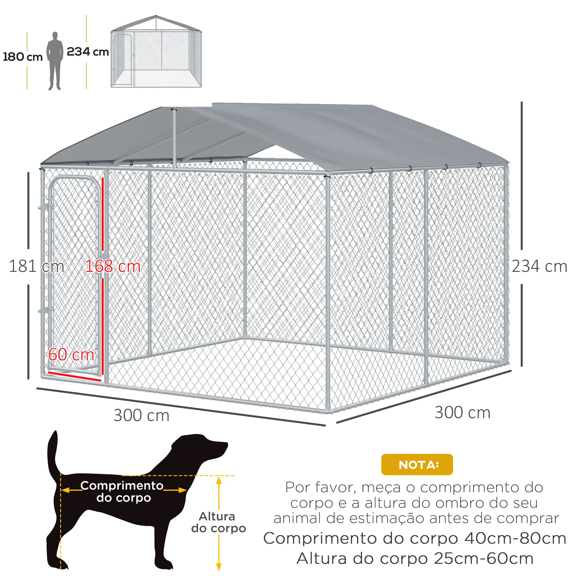 Canil de Exterior Prata 300x300x234 cm com Toldo - Espaçoso e Seguro