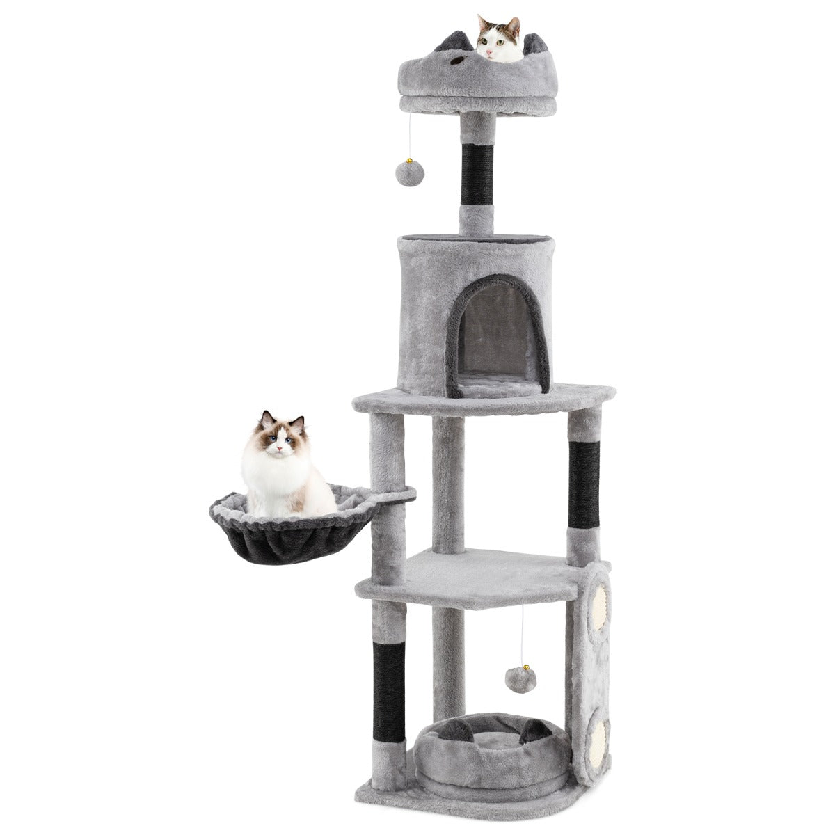 Torre para Gatos de Vários Níveis com Condomínio, Postes Arranhadores Cobertos com Sisal 58,5 x 58,5 x 153 cm