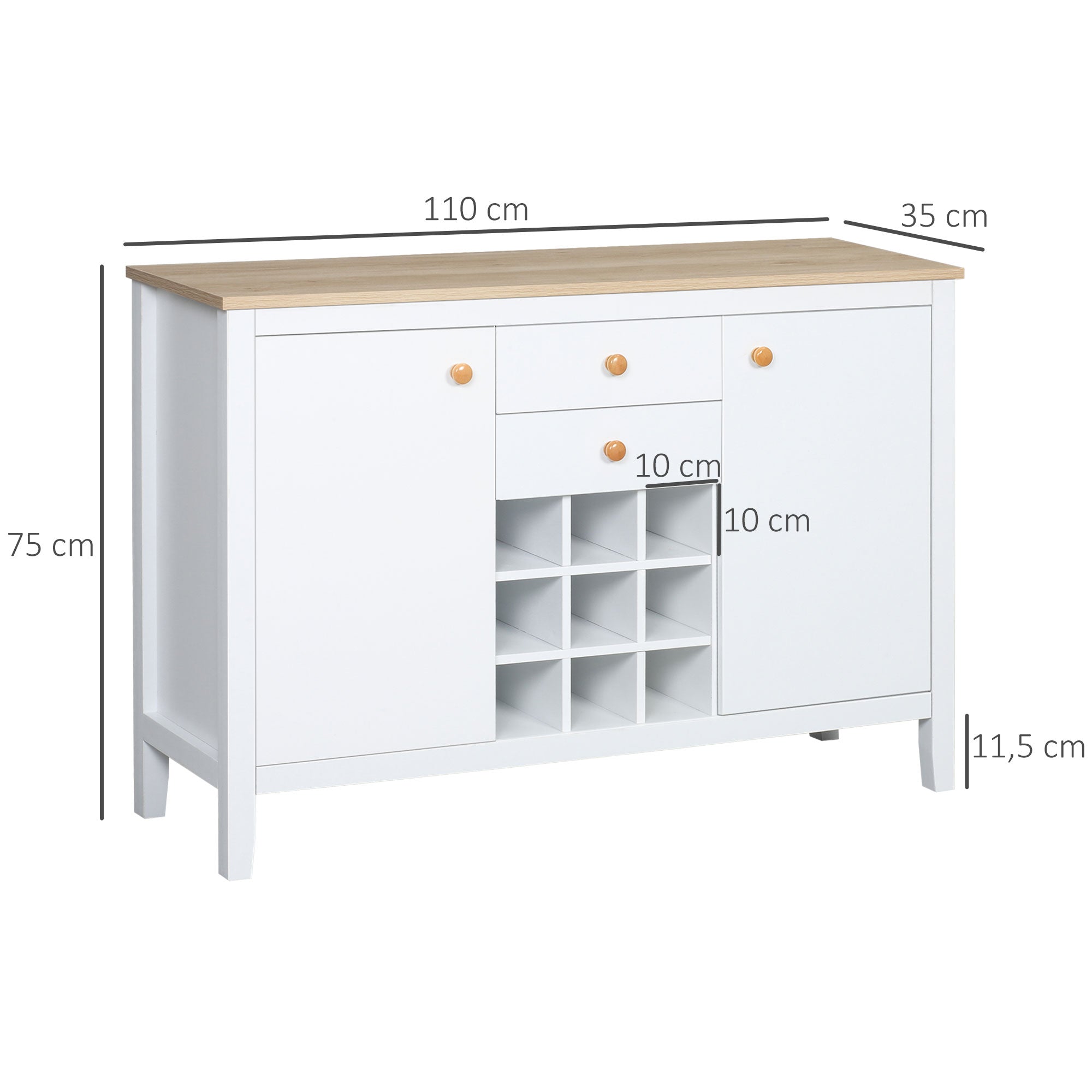 Aparador de Cozinha Moderno 110x35x75 cm - Branco e Madeira