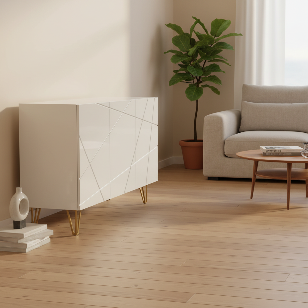 Aparador de Sala de Estar 117x36x74cm Branco de Alto Brilho