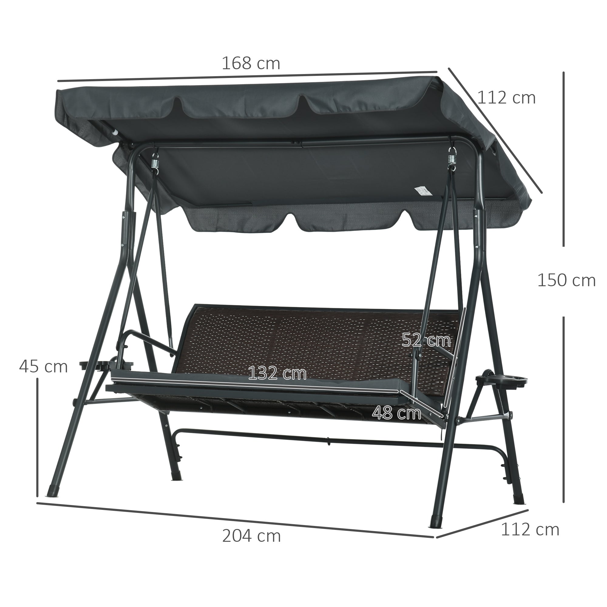 Baloiço de Jardim 3 Lugares Cinza Escuro 200x127x170 cm