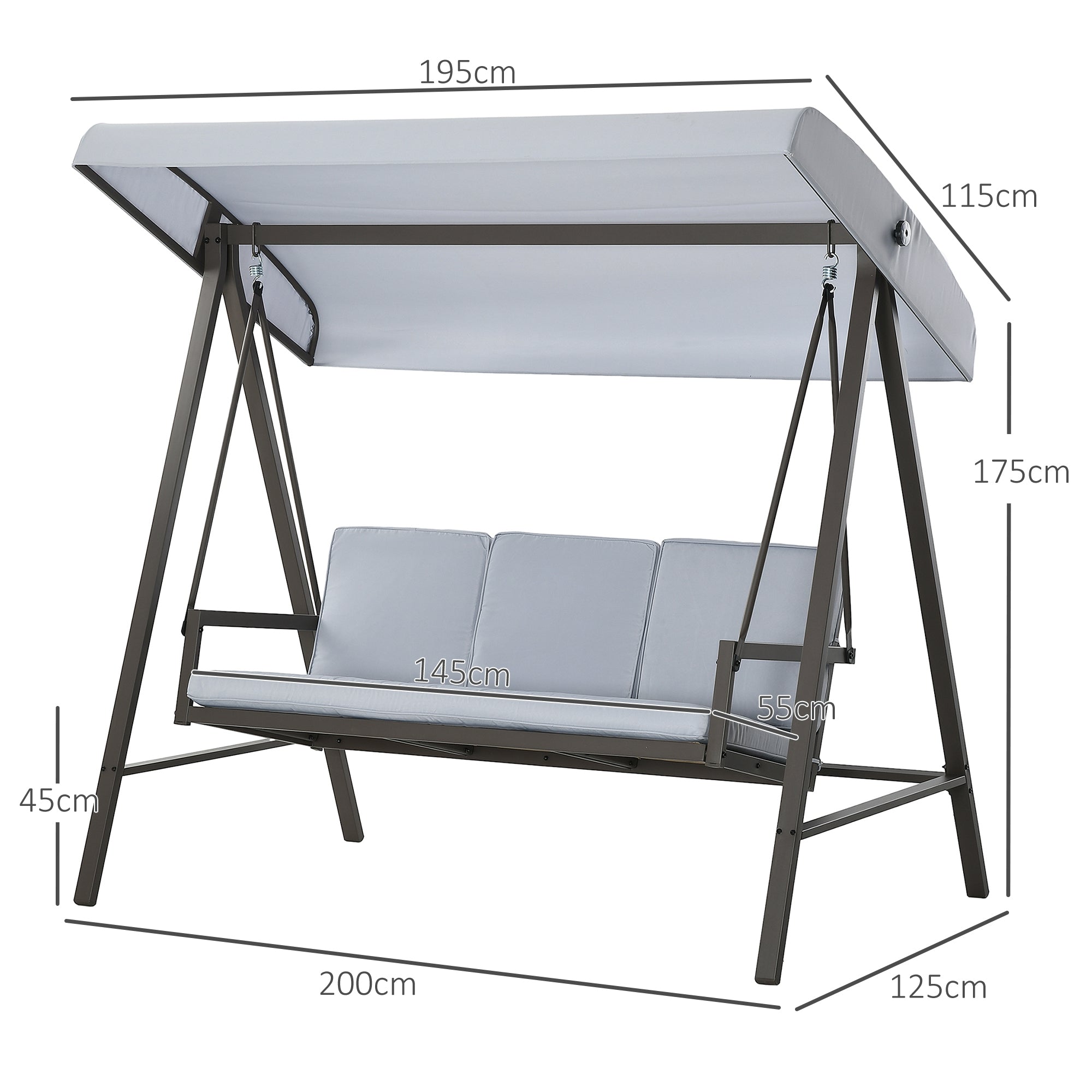 Baloiço de Jardim 3 Lugares 196x128x172 cm - Cinzento