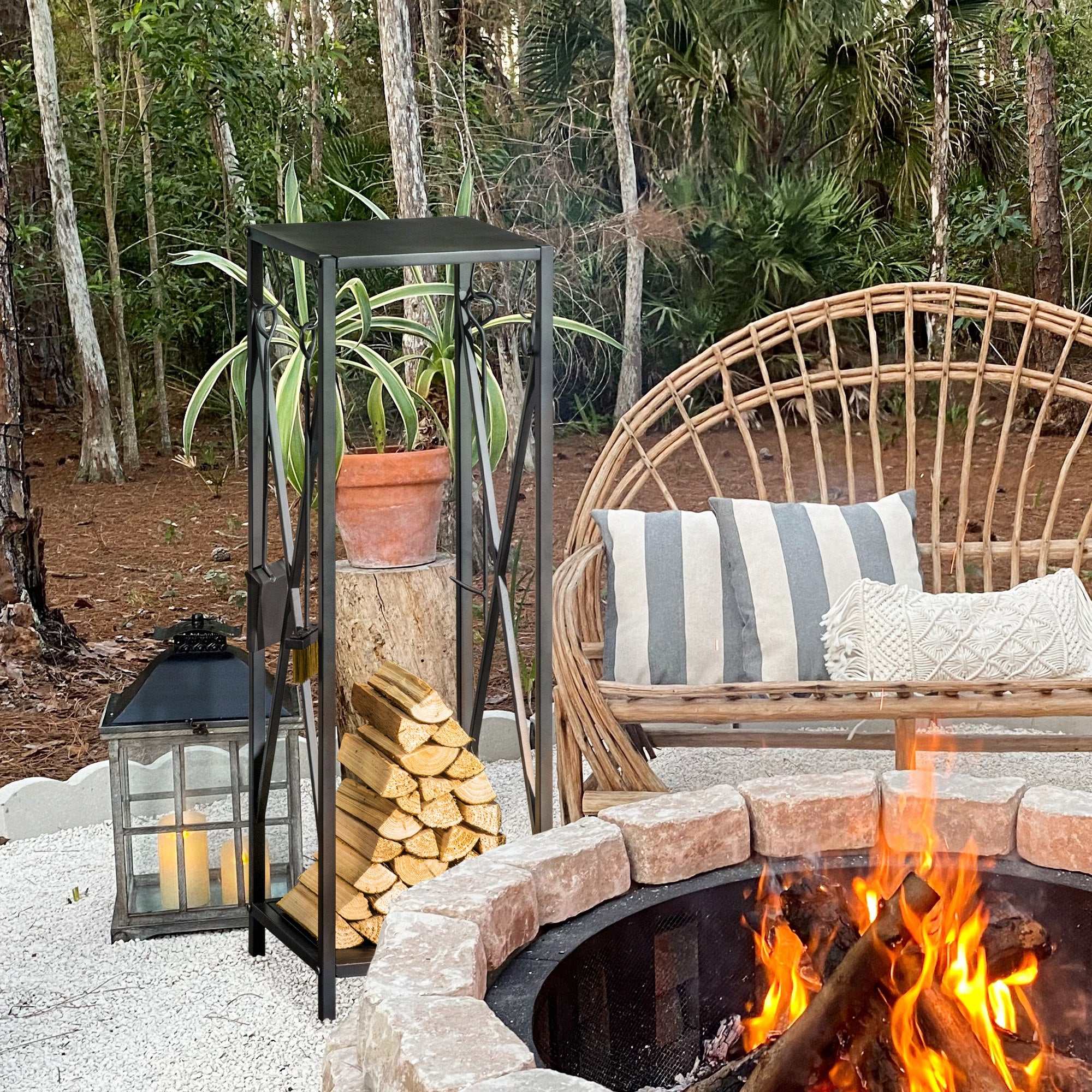 Suporte para Lenha – 34x34x111 cm – Preto – Metal