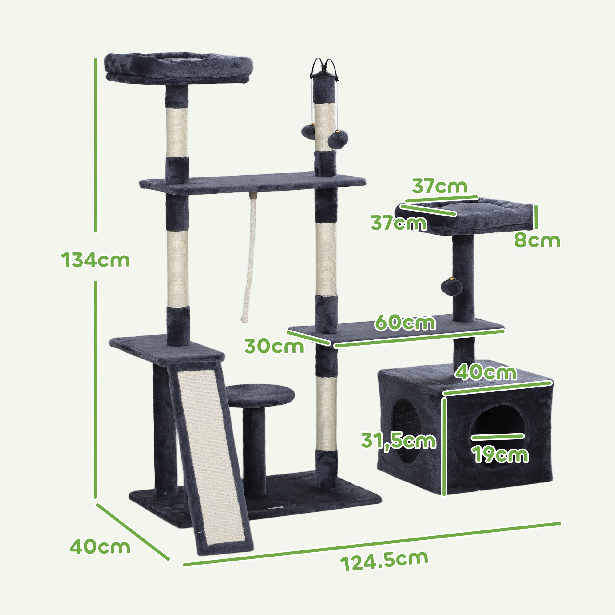Arranhador para Gatos – 124,5x40x134 cm – Cinzento – Aglomerado, pelúcia, algodão PP, sisal