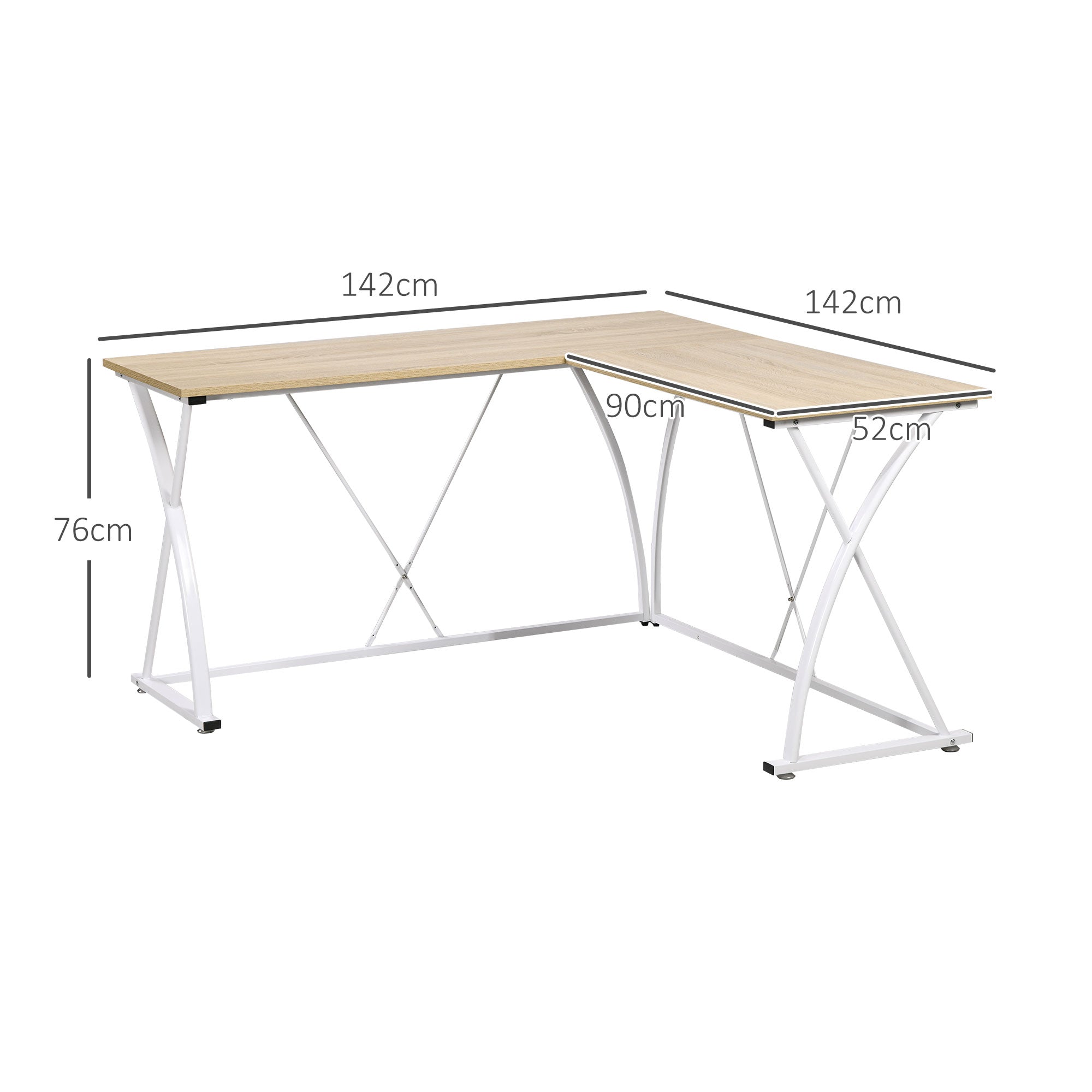 Secretária de Canto em Forma de L 142x142x76cm Cor de Madeira Natural