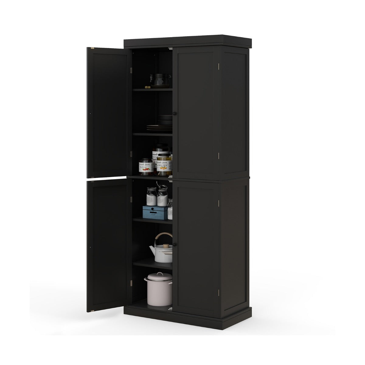 Armário Alto de Cozinha com 184,5 cm Armário Alto de Cozinha com Prateleiras de 6 Níveis 2 Ajustáveis Armário Independente Preto