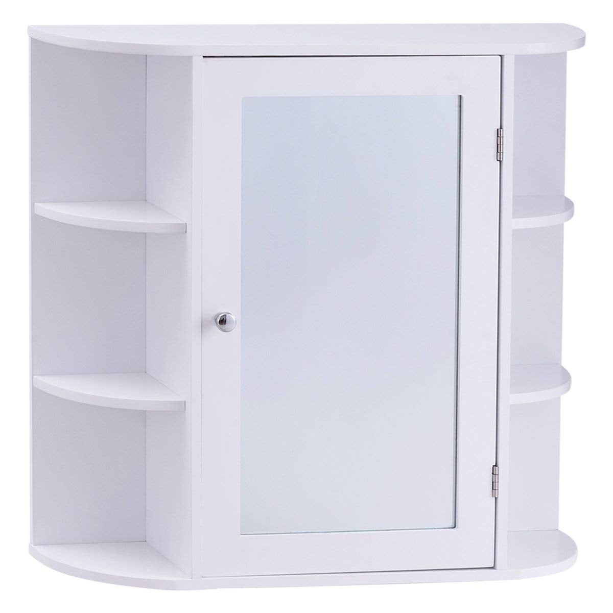 Armário com Espelho de Casa de Banho Prateleira de Parede Móvel de Arrumação 65x17x63cm Branco
