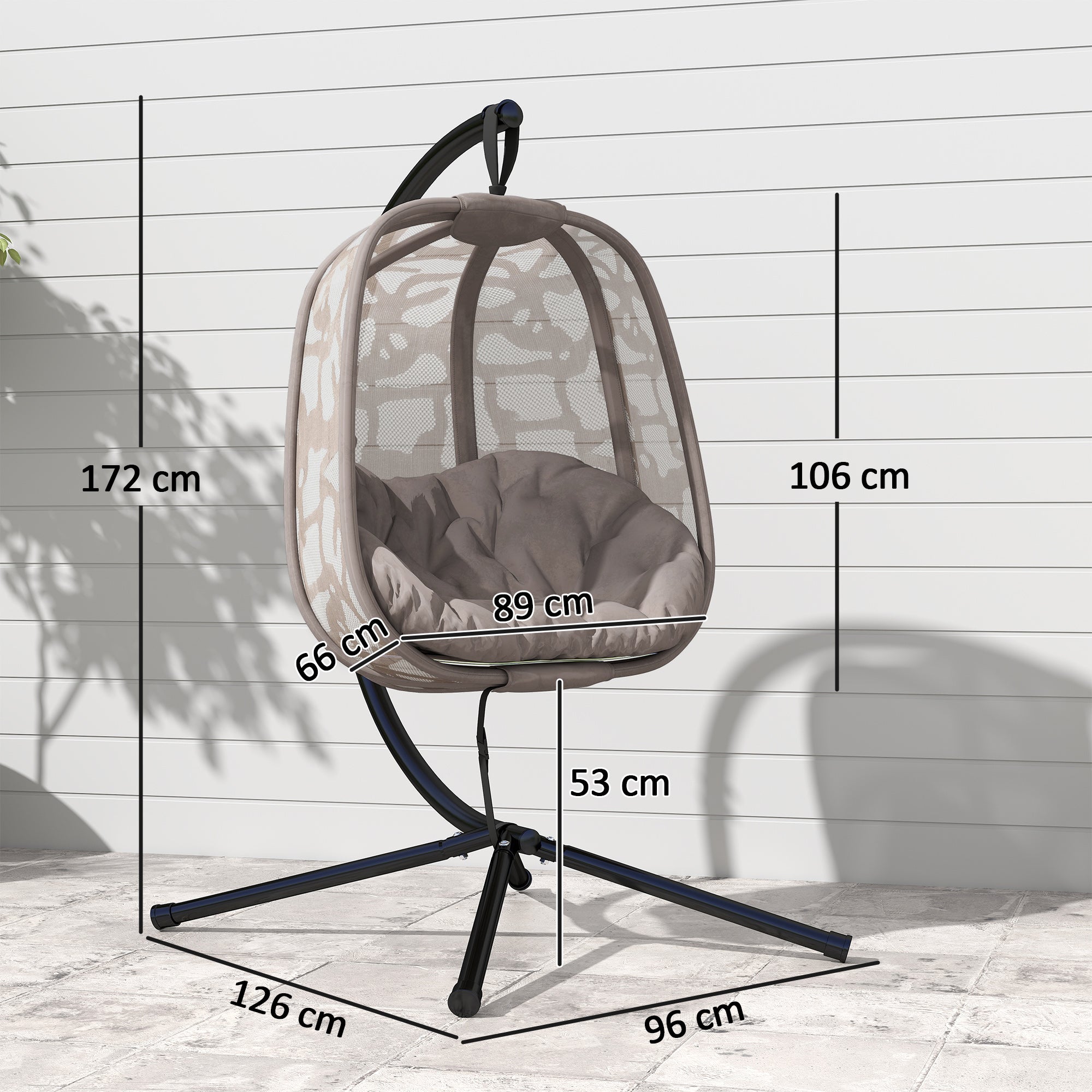 Cadeirão Suspenso com Suporte de Aço – 126x96x172cm – Cor Areia – Aço