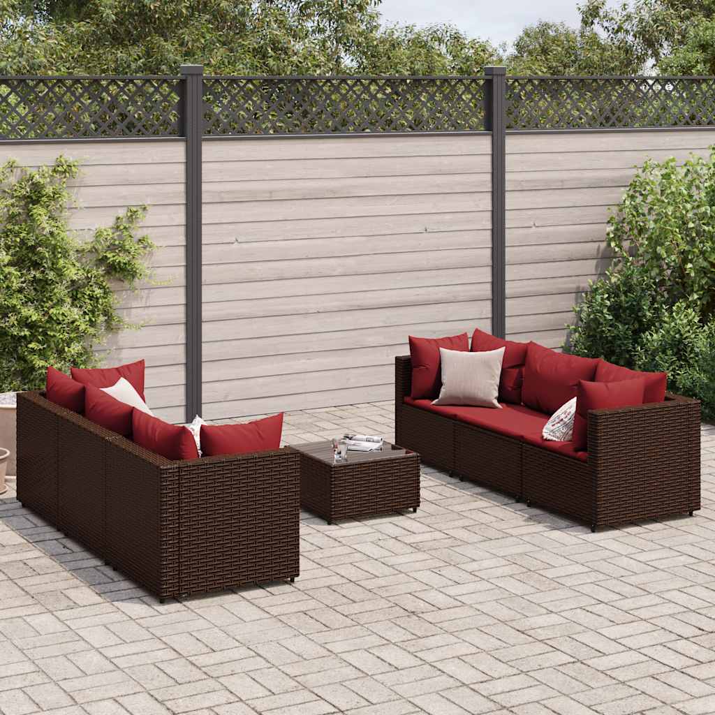 7 pcs conjunto lounge jardim c/ almofadões vime PE castanho