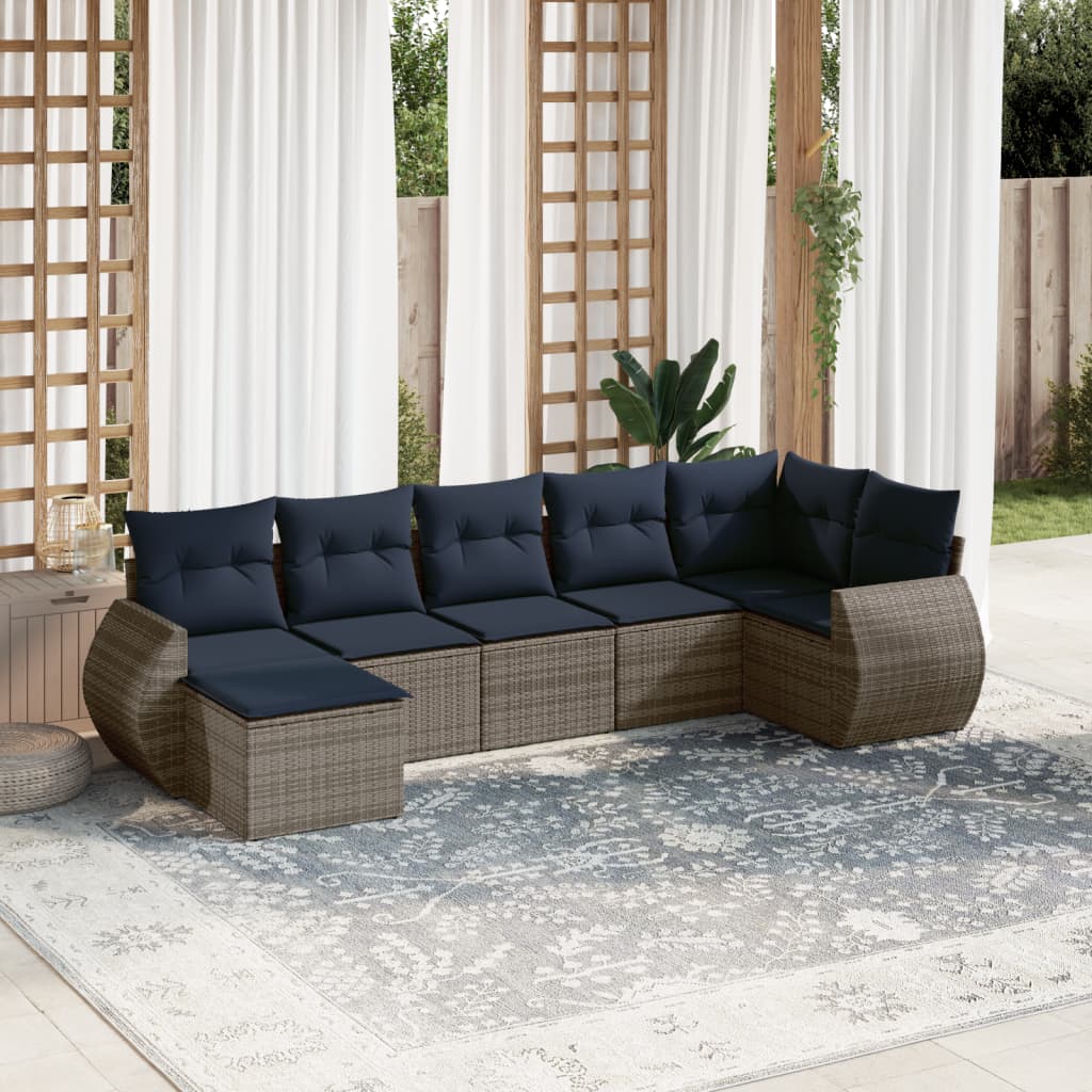 7 pcs conjunto sofás p/ jardim c/ almofadões vime PE cinzento