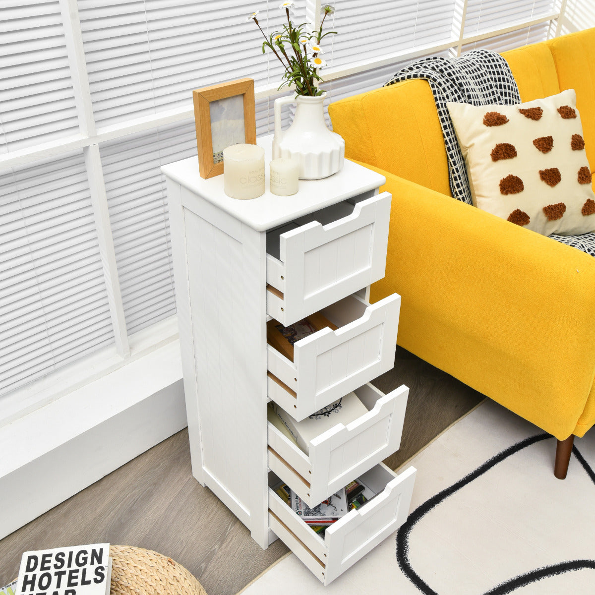 Armário de Casa de Banho com 4 Gavetas Gaveteiro de Chão de Arrumação Móvel Auxiliar Casa de Banho Cozinha Quarto Sala 30 x 30 x 83 cm Branco