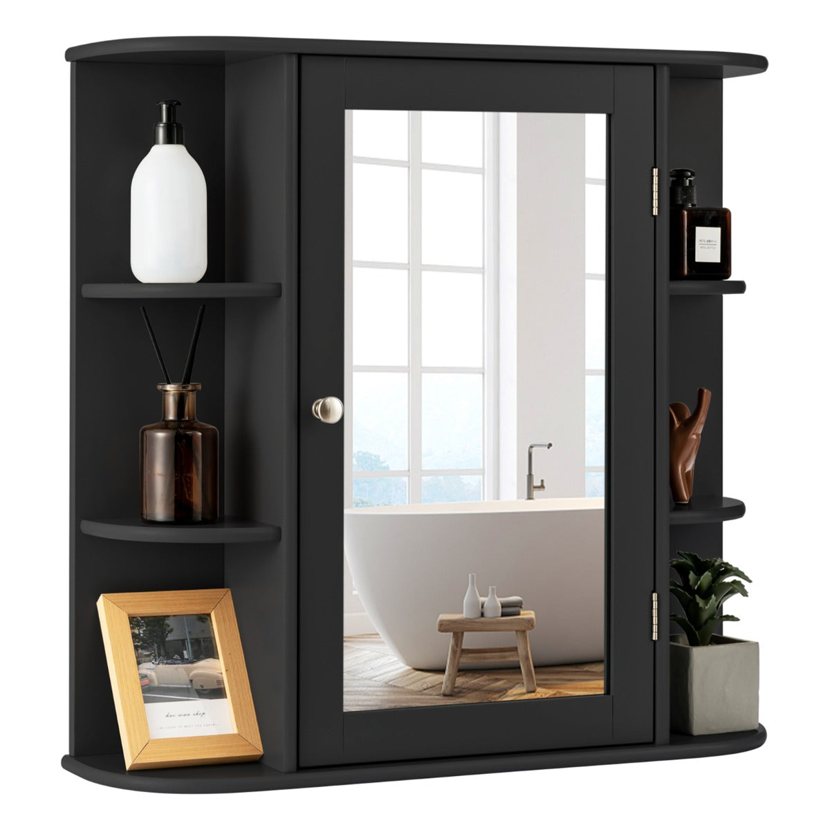 Armário de Casa de Banho com Espelho – 56 x 15 x 69,5 cm – Preto – Aglomerado