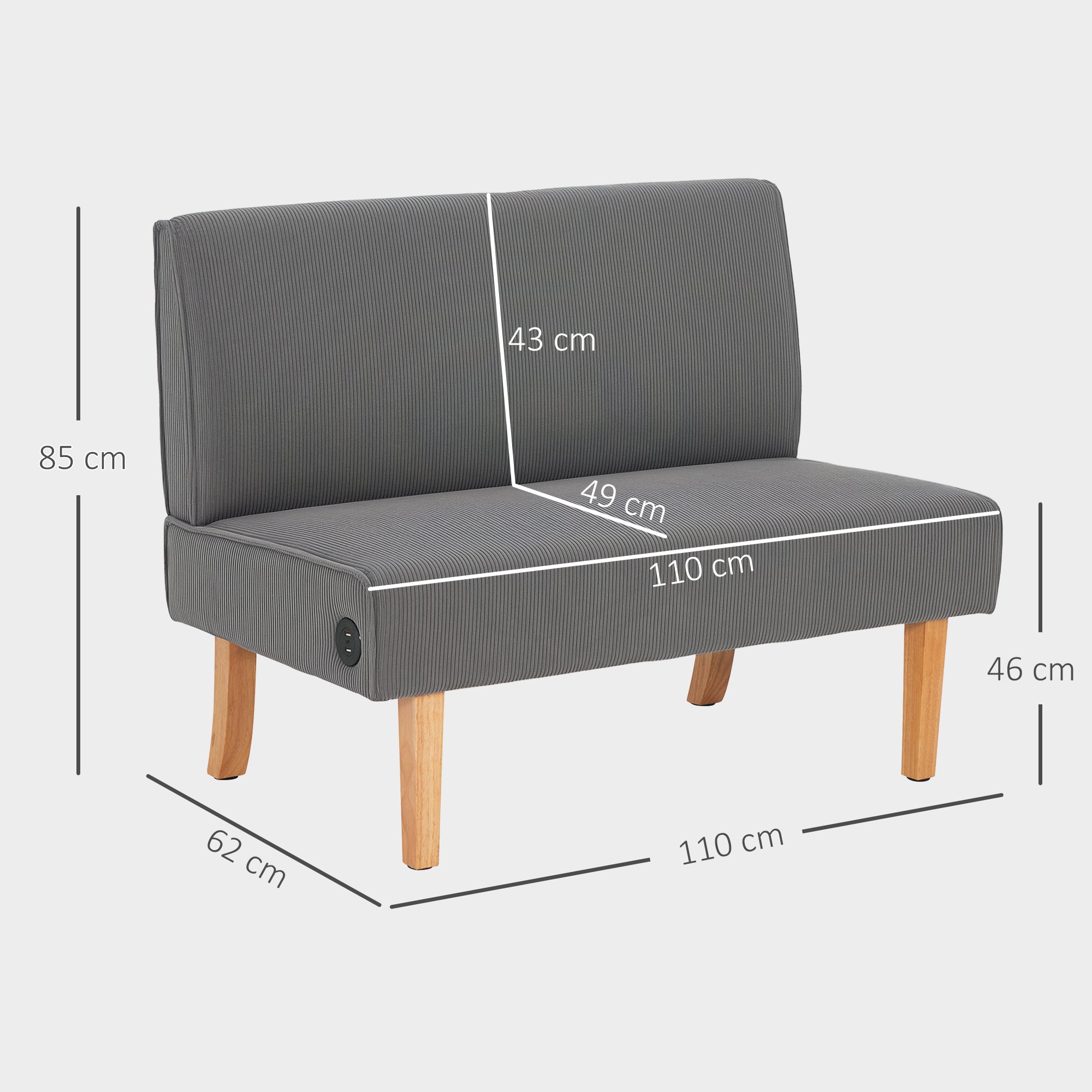 Sofá de 2 Lugares – 110x62x85 cm – Cinzento – Veludo