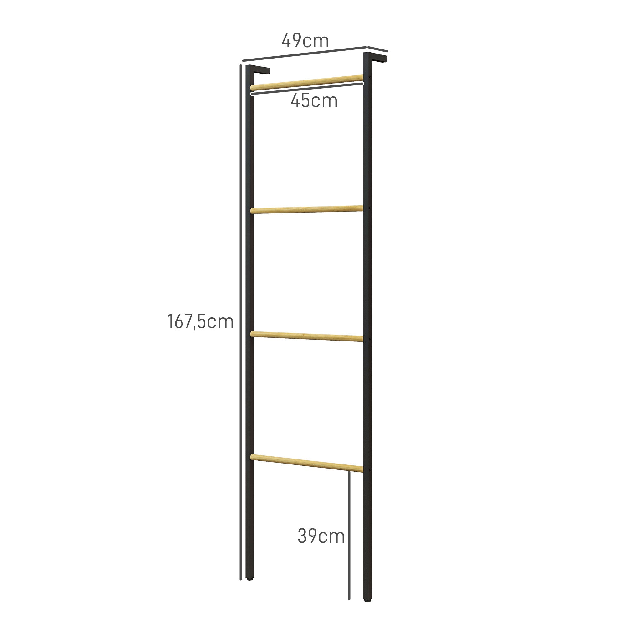 Toalheiro de 4 Níveis Escada de Bambu e Aço 49x5,5x167,5 cm Preto e Madeira