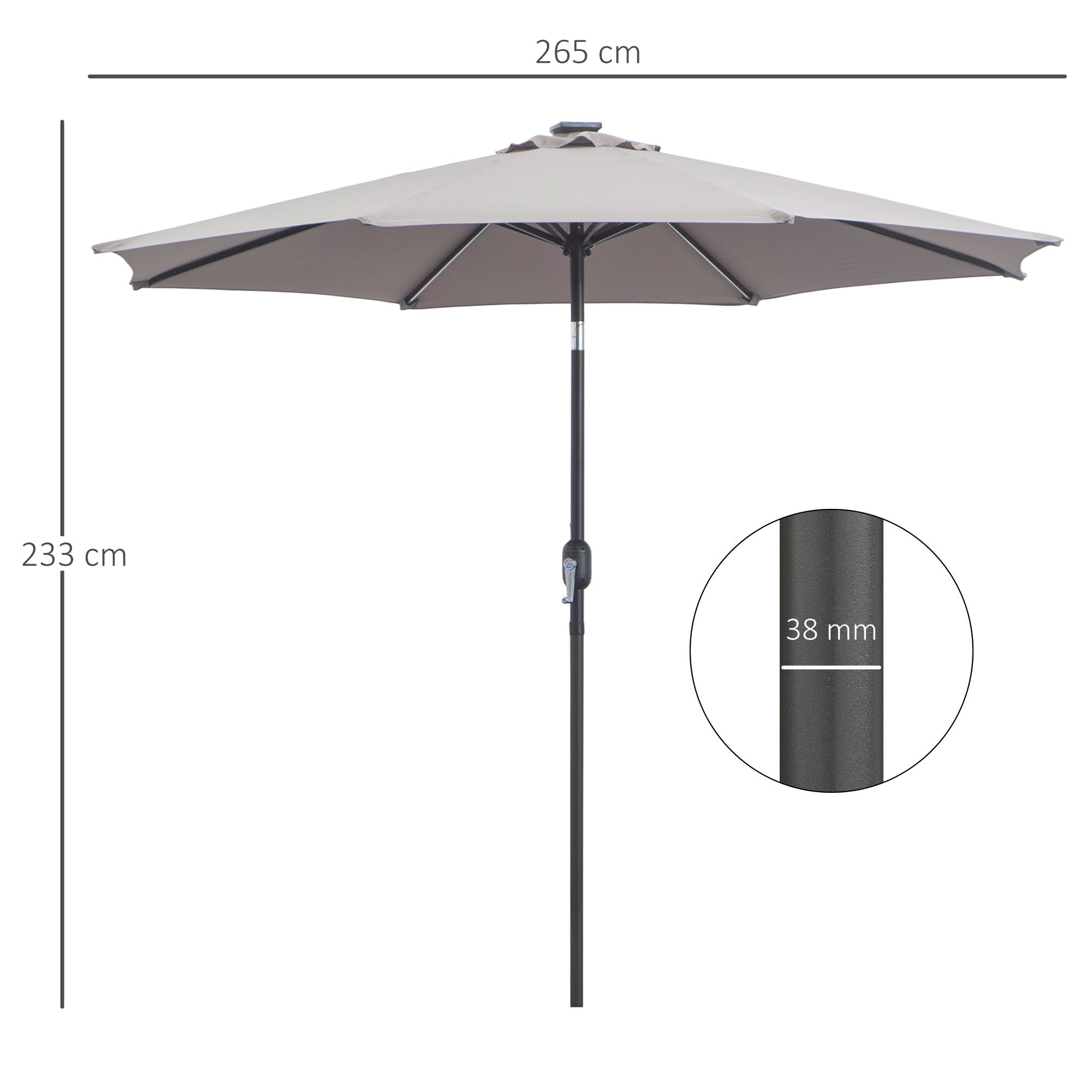 Chapéu de Sol Cinzento Ø265x233cm com 32 Luzes LED Solares
