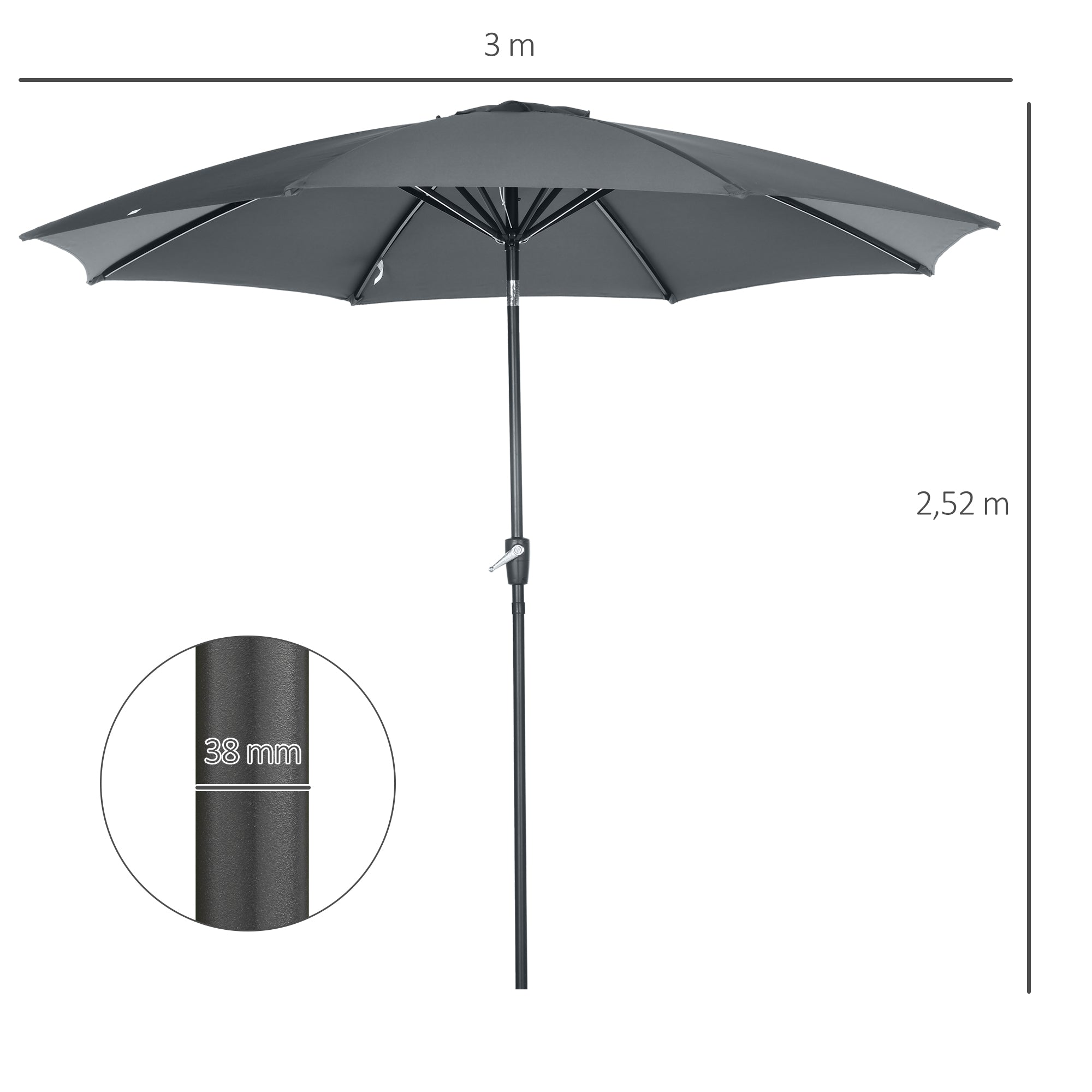 Chapéu de Sol Cinzento Ø300x240 cm com Manivela e Teto Inclinável