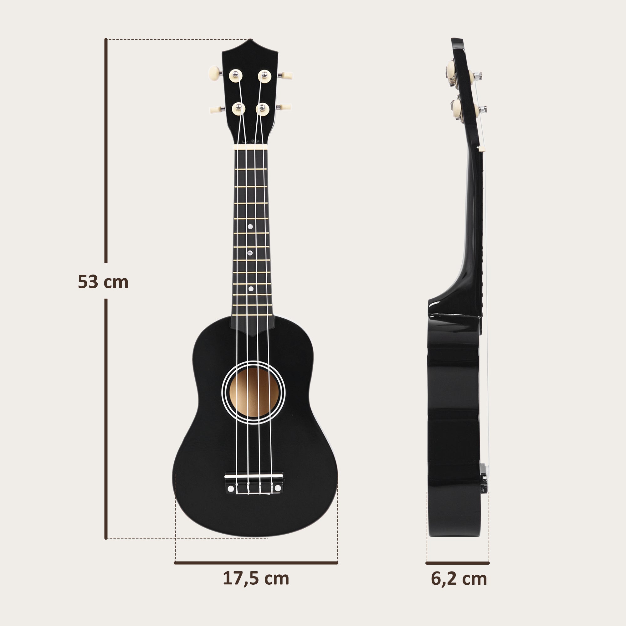 Ukelele Soprano 21 Polegadas em Madeira - Preto (53x17,5x6,2 cm)