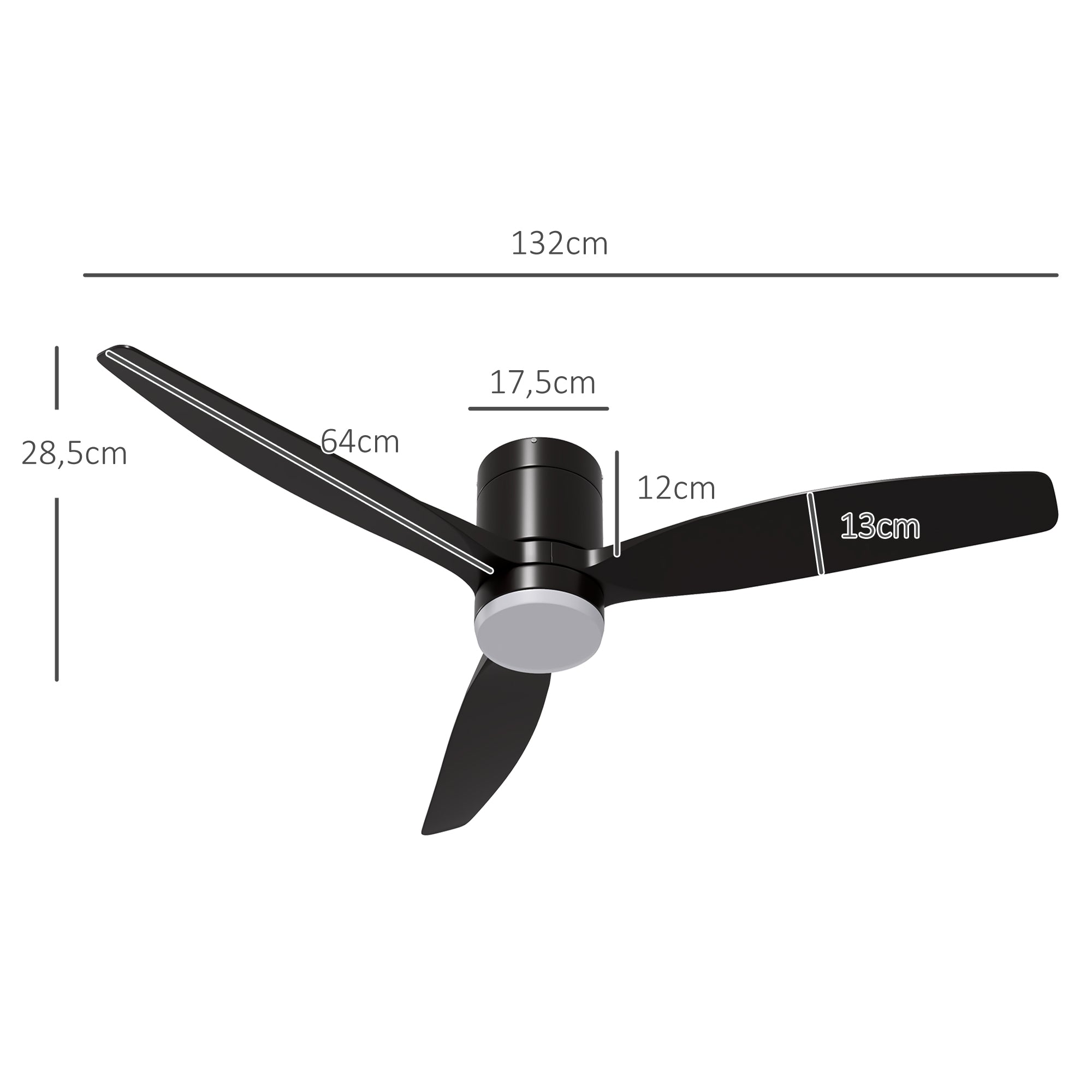 Ventoinha de Teto com Luz Ø129x45 cm - Cor Preto