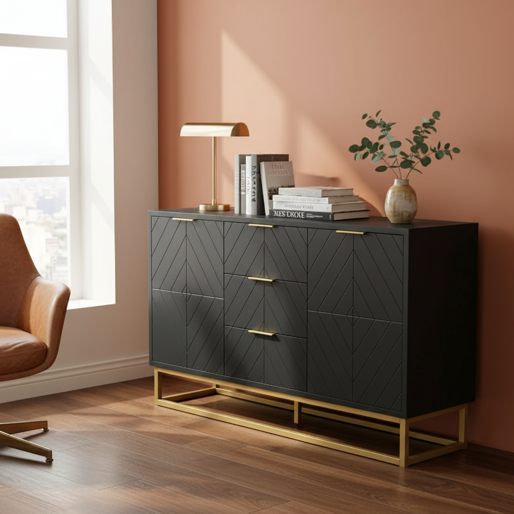 Aparador preto fechado em escritório elegante