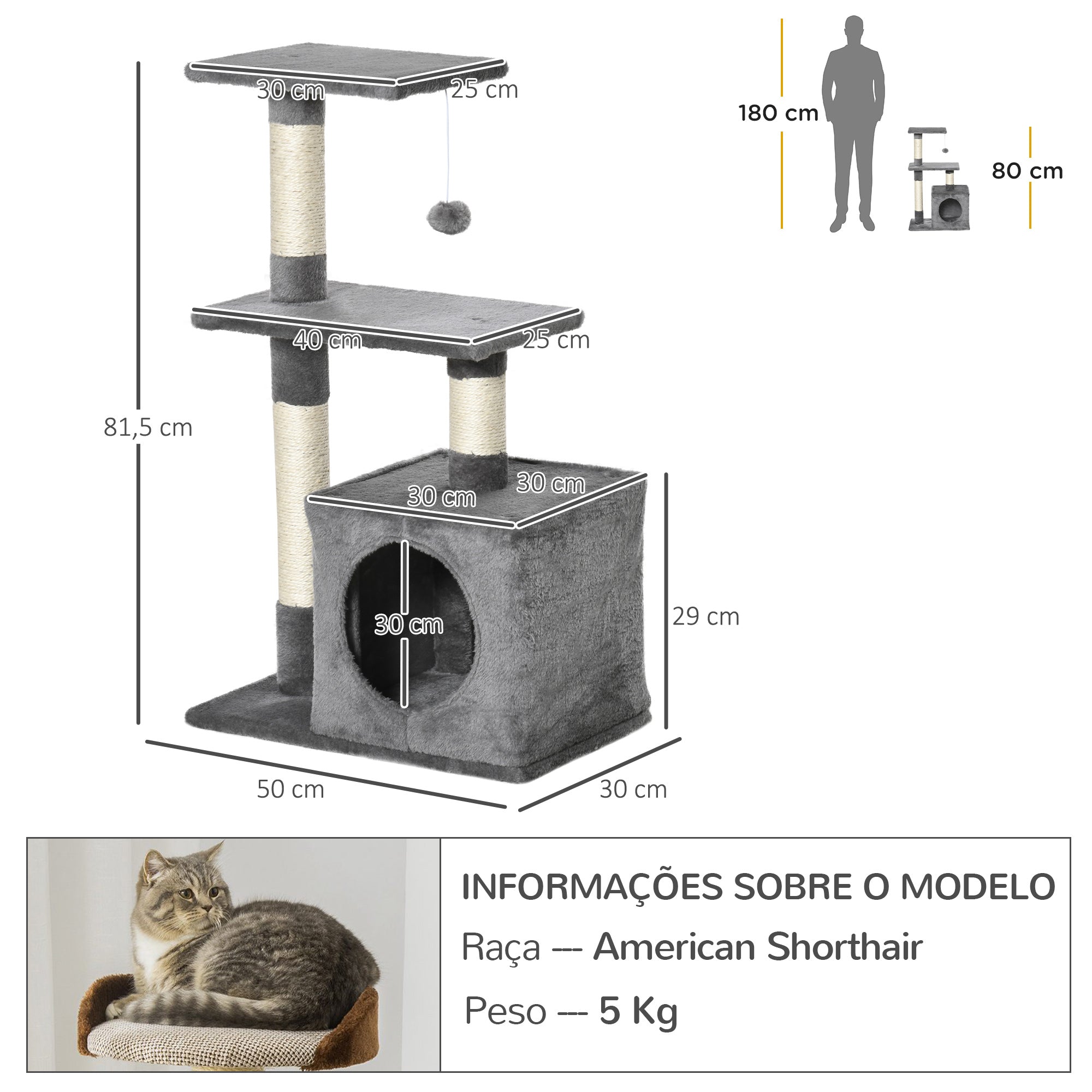 Arranhador para Gatos 50x30x81,5 cm Cinza Escuro Centro de Atividades com Poste de Sisal e Plataformas