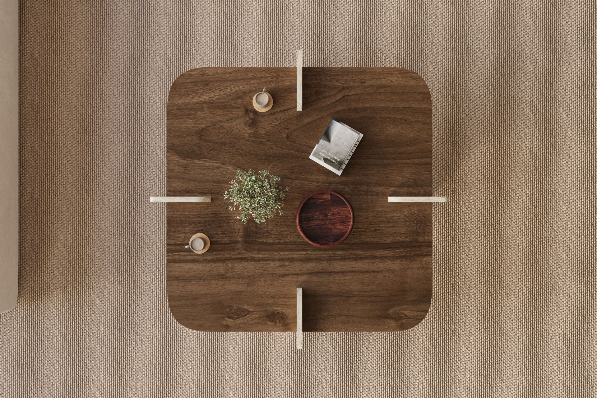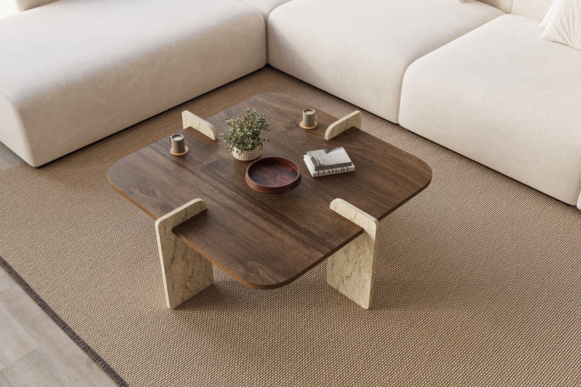 Mesa de Centro Poalla Walnut Travertine - Design Luxuoso 90x90cm