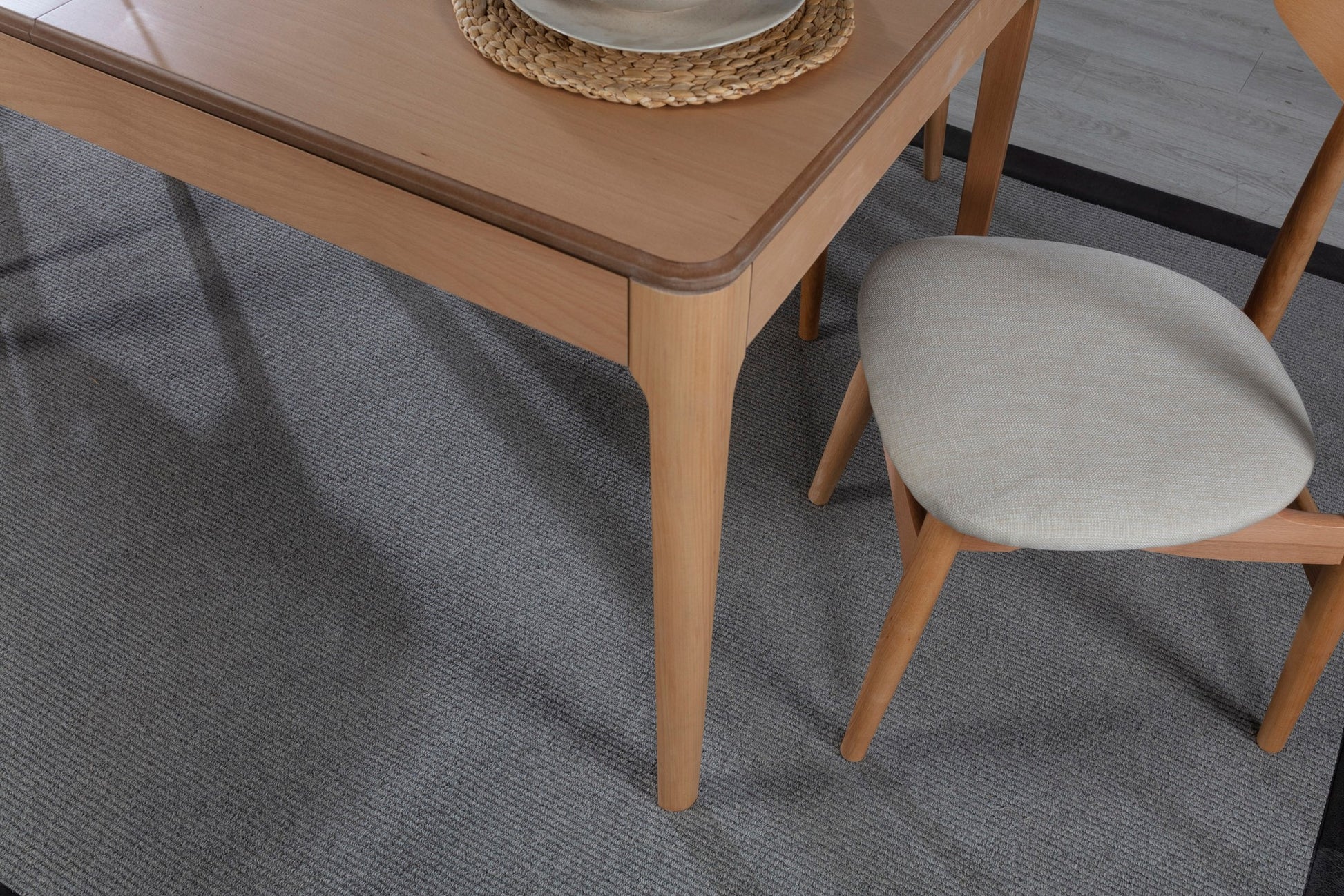 As cadeiras deste conjunto são estofadas com tecido 100% linho, oferecendo uma experiência de assento luxuosa e confortável. O tecido macio e respirável acrescenta um toque de elegância ao design geral, fazendo com que cada refeição pareça uma ocasião especial.