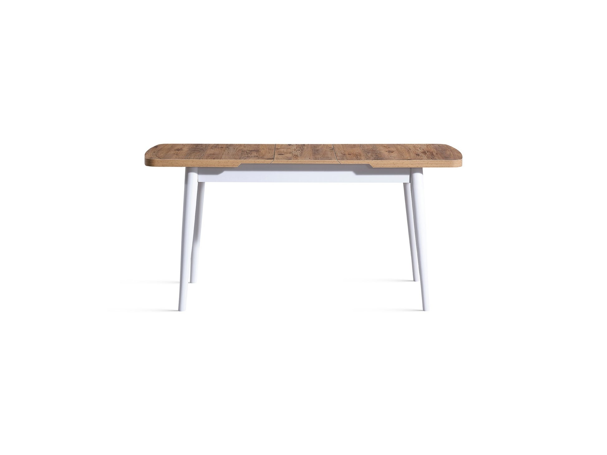 O tampo em mdf anti-riscos da mesa garante que esta se mantém em perfeitas condições, mesmo após anos de utilização. A combinação de cores brancas e naturais confere a esta mesa de jantar um aspeto moderno e elegante que complementará qualquer estilo de decoração. Quer esteja a organizar um jantar ou a desfrutar de uma refeição tranquila com a sua família, esta mesa de jantar extensível é a escolha perfeita.