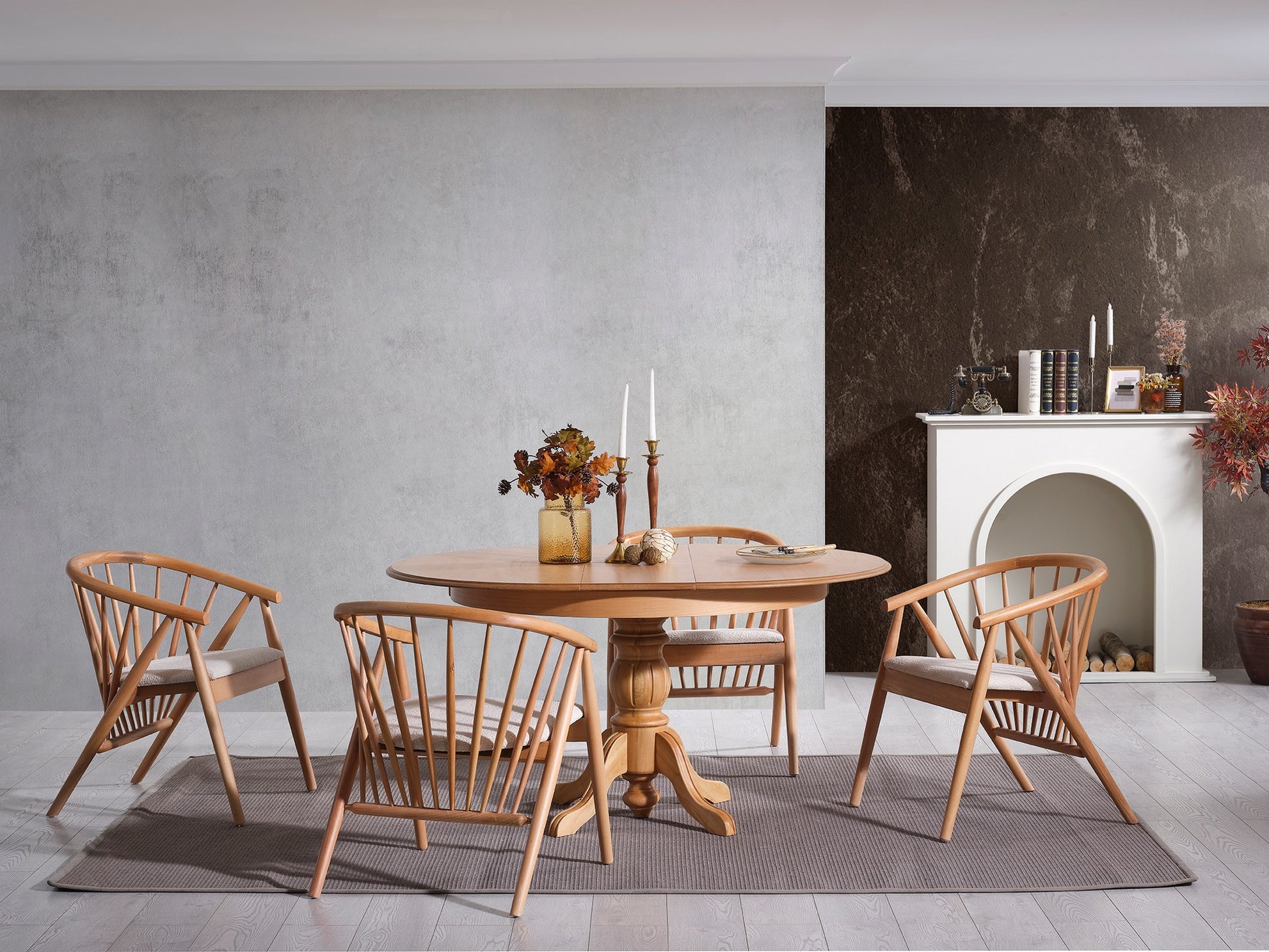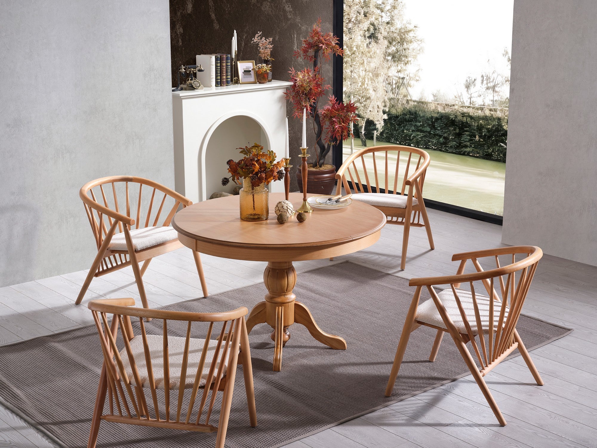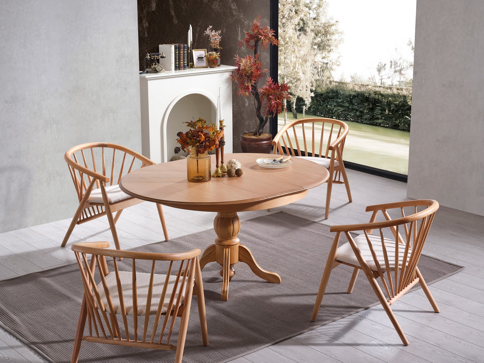 Transforme a sua sala de jantar num espaço acolhedor e convidativo com o nosso requintado conjunto de mesa de jantar extensível e cadeiras. Fabricado em madeira 100% faia, este conjunto exala elegância e durabilidade, tornando-o uma adição intemporal à sua casa.