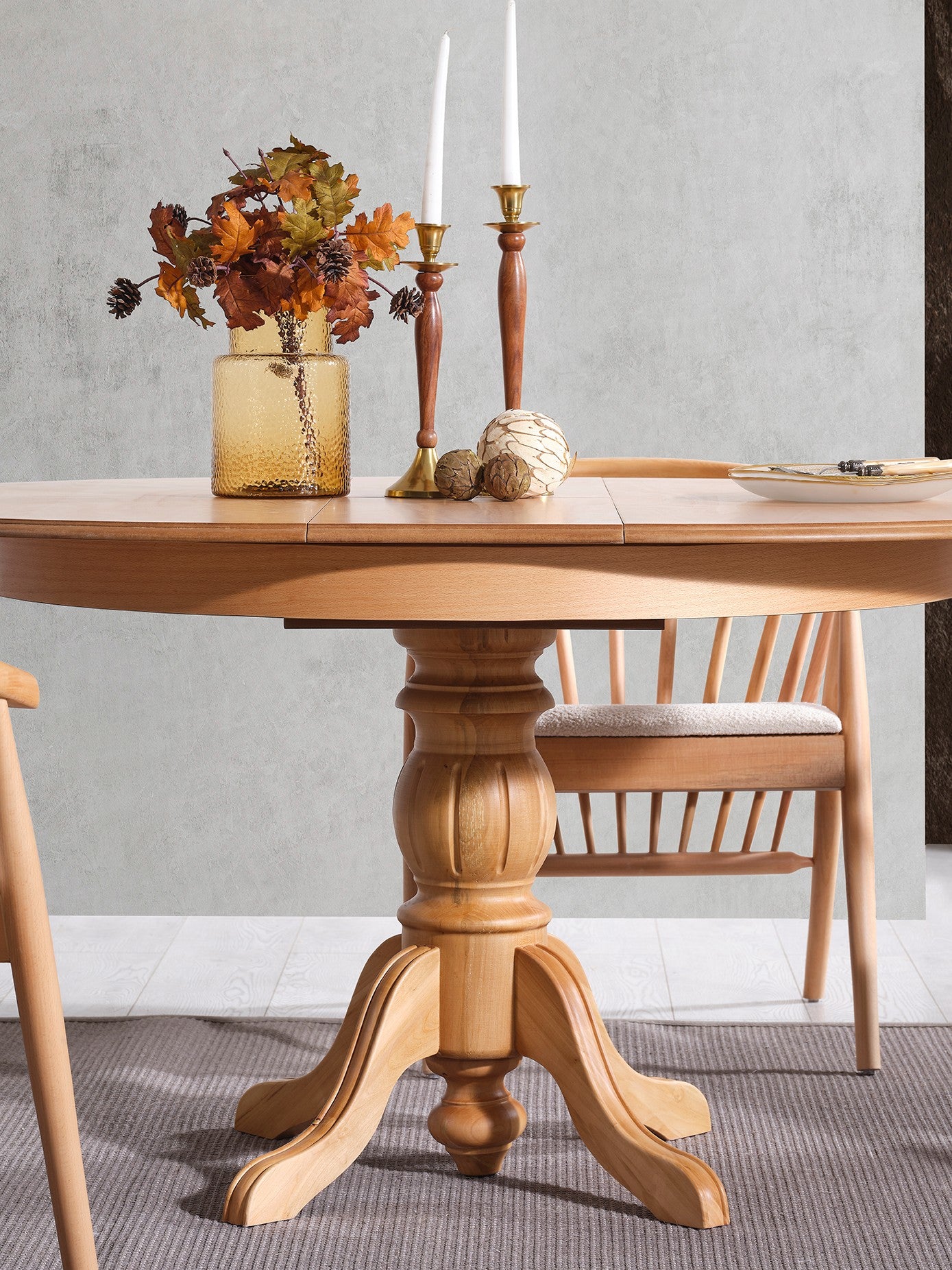 Conjunto de mesa de jantar extensível e cadeiras (4 peças) – 118 cm x 75 cm x 118 cm – Natural – Madeira de faia