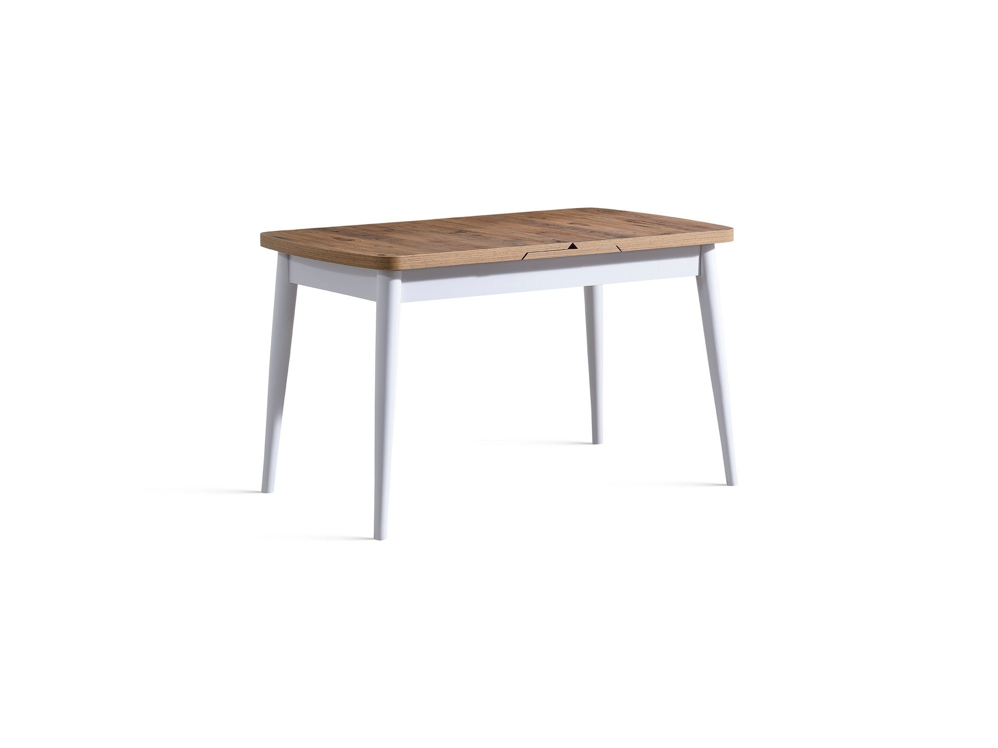 Conjunto de mesa de jantar extensível e cadeiras – 127 cm/156 cm x 70 cm x 75 cm – Branco e Natural – Madeira de Faia
