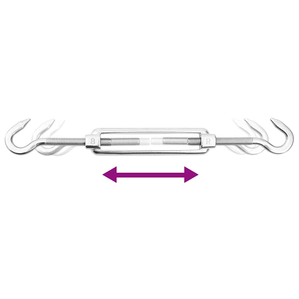 O conjunto de acessórios em aço inoxidável é fácil de usar e perfeito para a maioria dos tipos de para-sóis estilo vela. Assim que os olhais estejam fixados a uma parede estável, o para-sol estilo vela pode ser preso com os mosquetões. É também muito fácil de remover. O esticador é ajustável, o que facilita apertar ou afrouxar o para-sol.