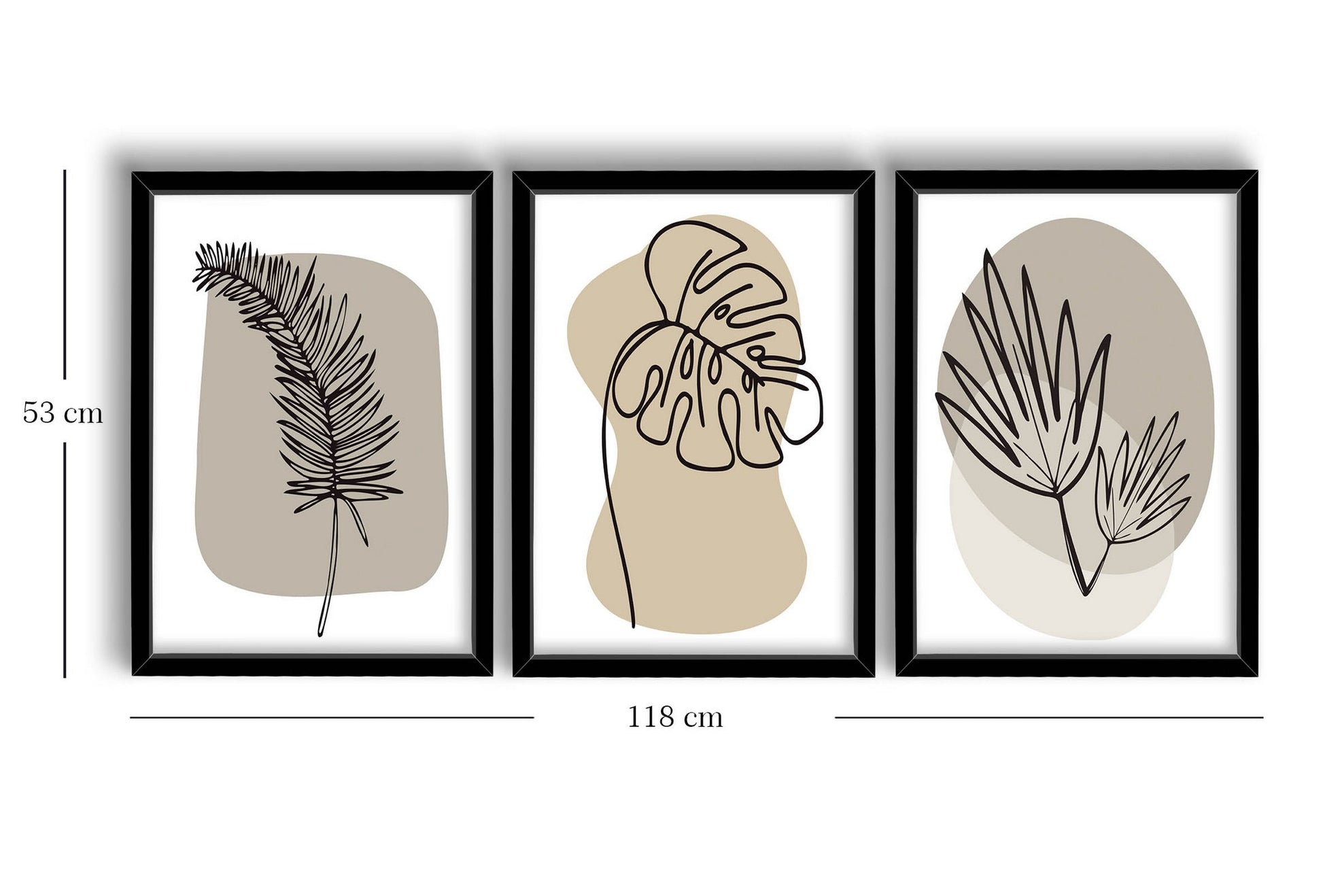 Conjunto de 3 Quadros Decorativos em MDF com Moldura de Madeira – 38x53 cm – Cores: Bege, Branco e Preto