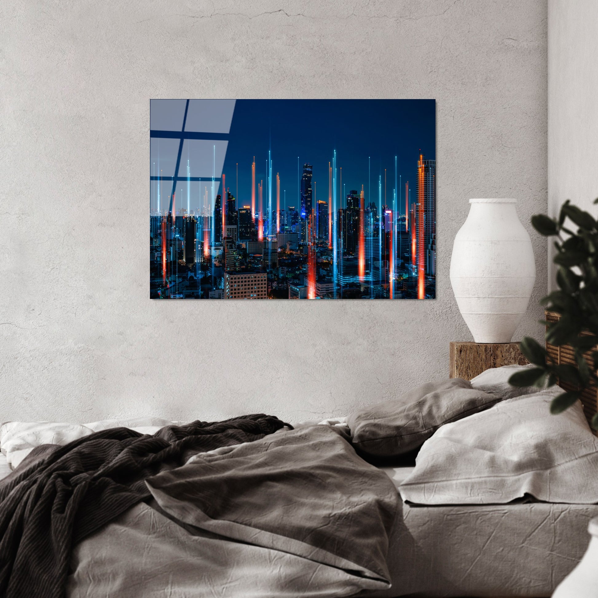 Este não é apenas um quadro - é uma declaração de estilo. O vidro temperado oferece uma luminosidade única que realça as cores multicolor, criando reflexos e jogos de luz que mudam ao longo do dia. Perfeito para salas de estar, escritórios modernos ou qualquer espaço que mereça um toque de sofisticação.