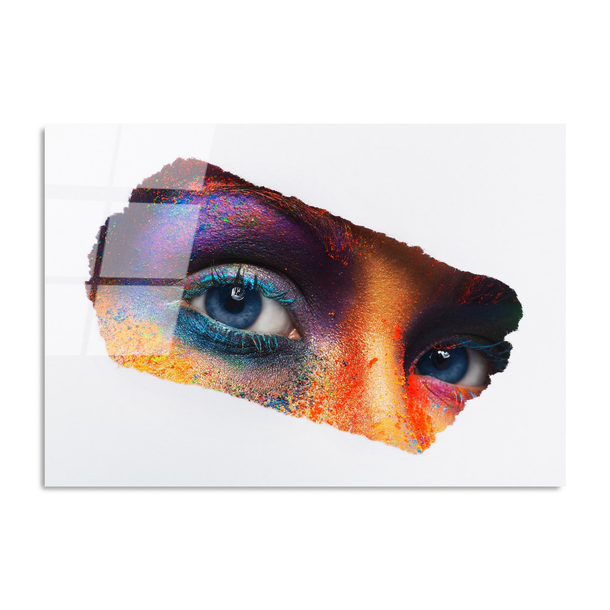 Este não é apenas um quadro decorativo - é uma declaração de estilo. O vidro temperado oferece uma luminosidade única que realça as cores multicolor, criando um efeito visual deslumbrante que muda conforme a luz do ambiente.