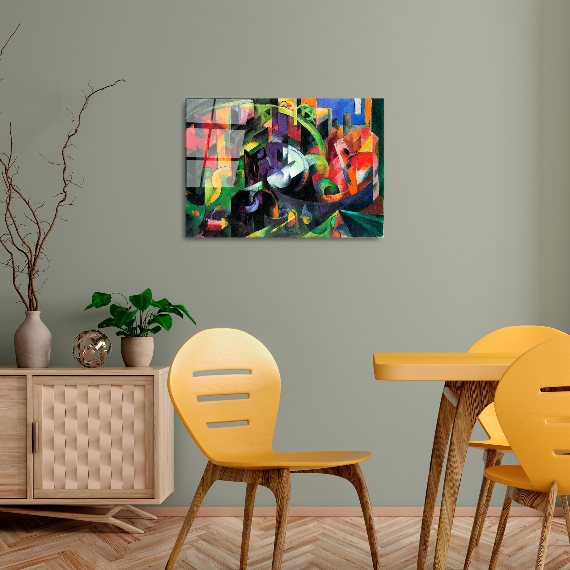 Este não é apenas um quadro decorativo - é uma declaração de estilo. O vidro temperado oferece uma luminosidade única que realça as cores e cria reflexos fascinantes, mudando a atmosfera do seu espaço ao longo do dia.