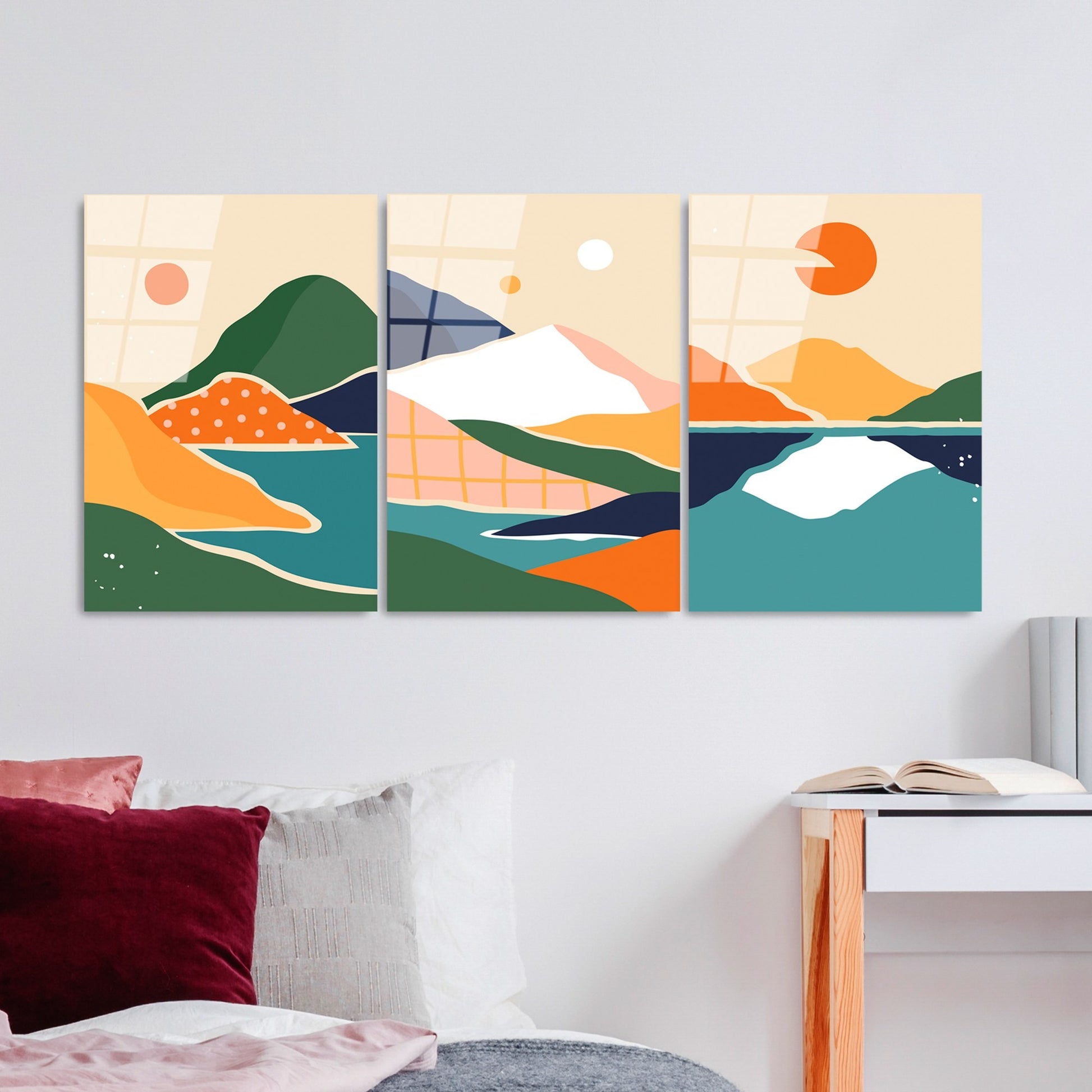 Quadro Decorativo em Vidro Temperado UV-945, Multicolor, 45 x 65 cm (Conjunto de 3 Peças), Vidro de 4 mm
