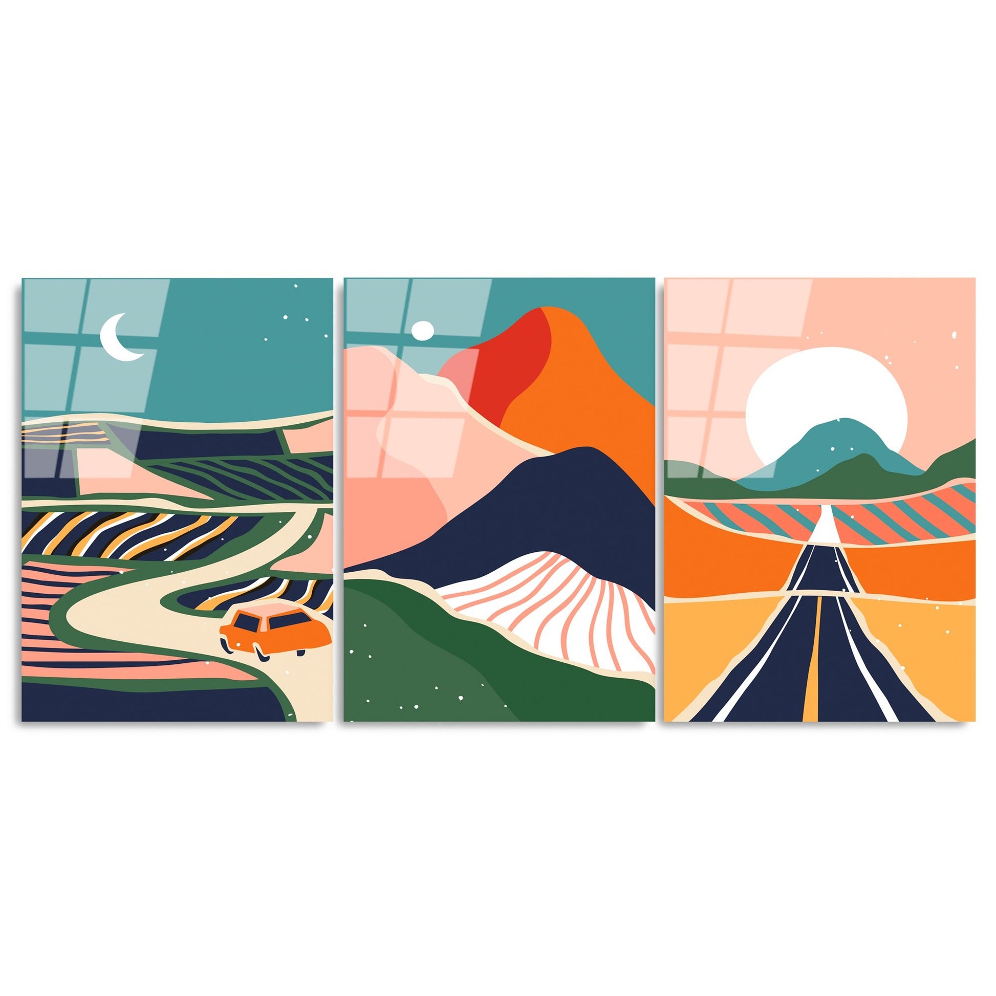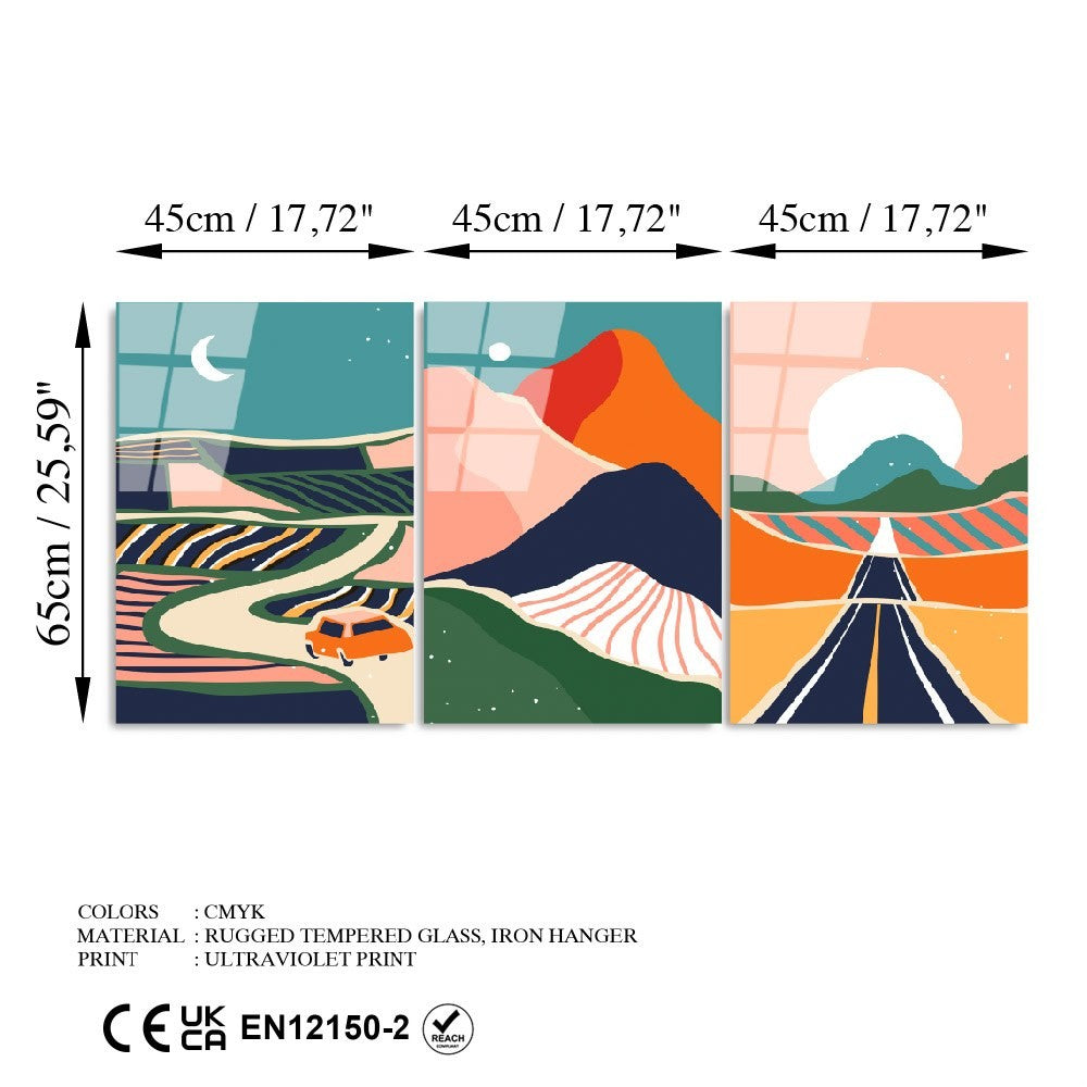 Quadro Decorativo em Vidro Temperado UV-947, 45 x 65 cm (3 Peças), Multicolor, 4 mm