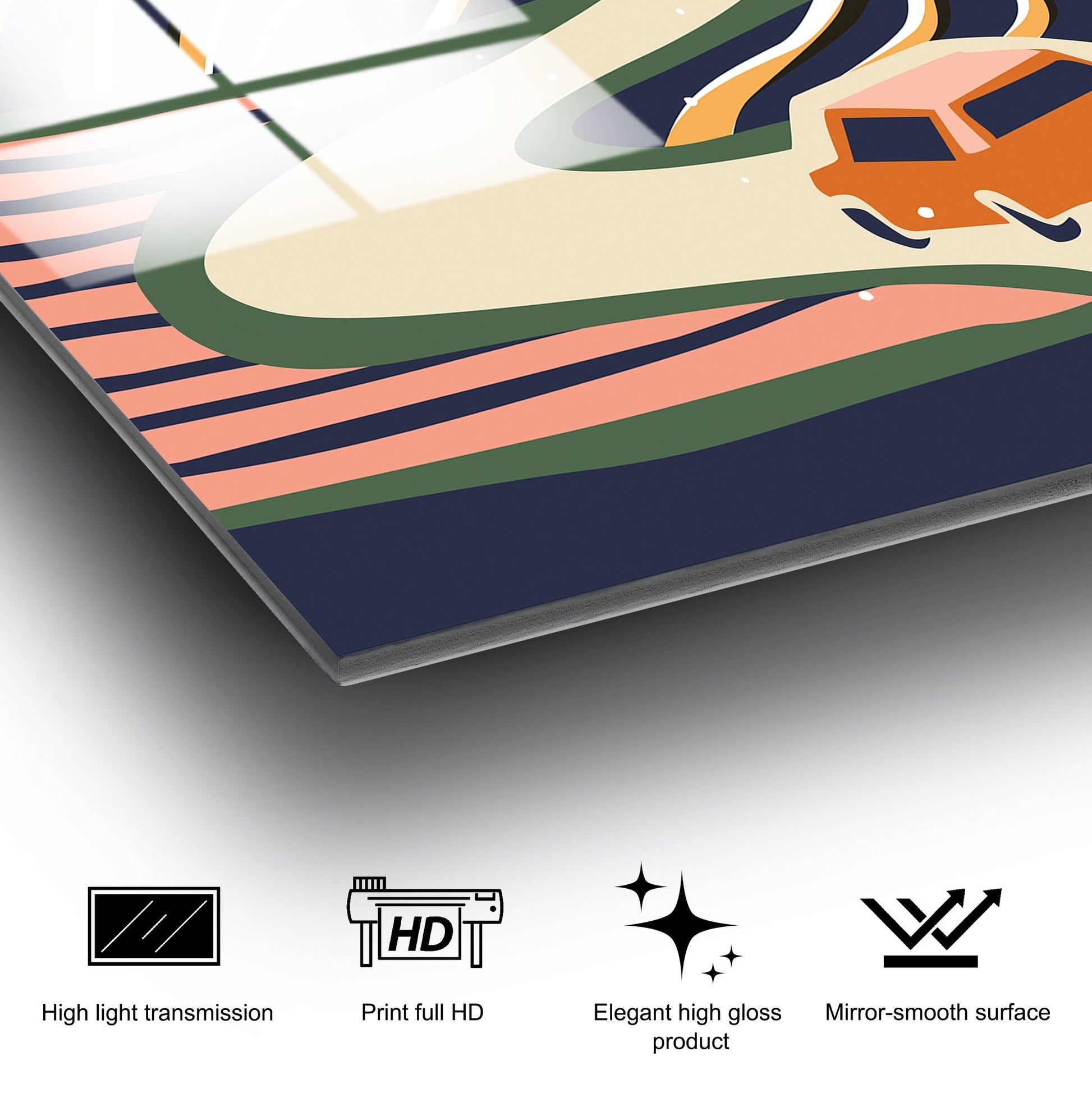 O vidro temperado oferece uma resistência 5 vezes superior ao vidro comum, garantindo segurança e longevidade. A sua superfície lisa e brilhante realça as cores, criando um efeito visual impressionante que capta a luz de forma única.