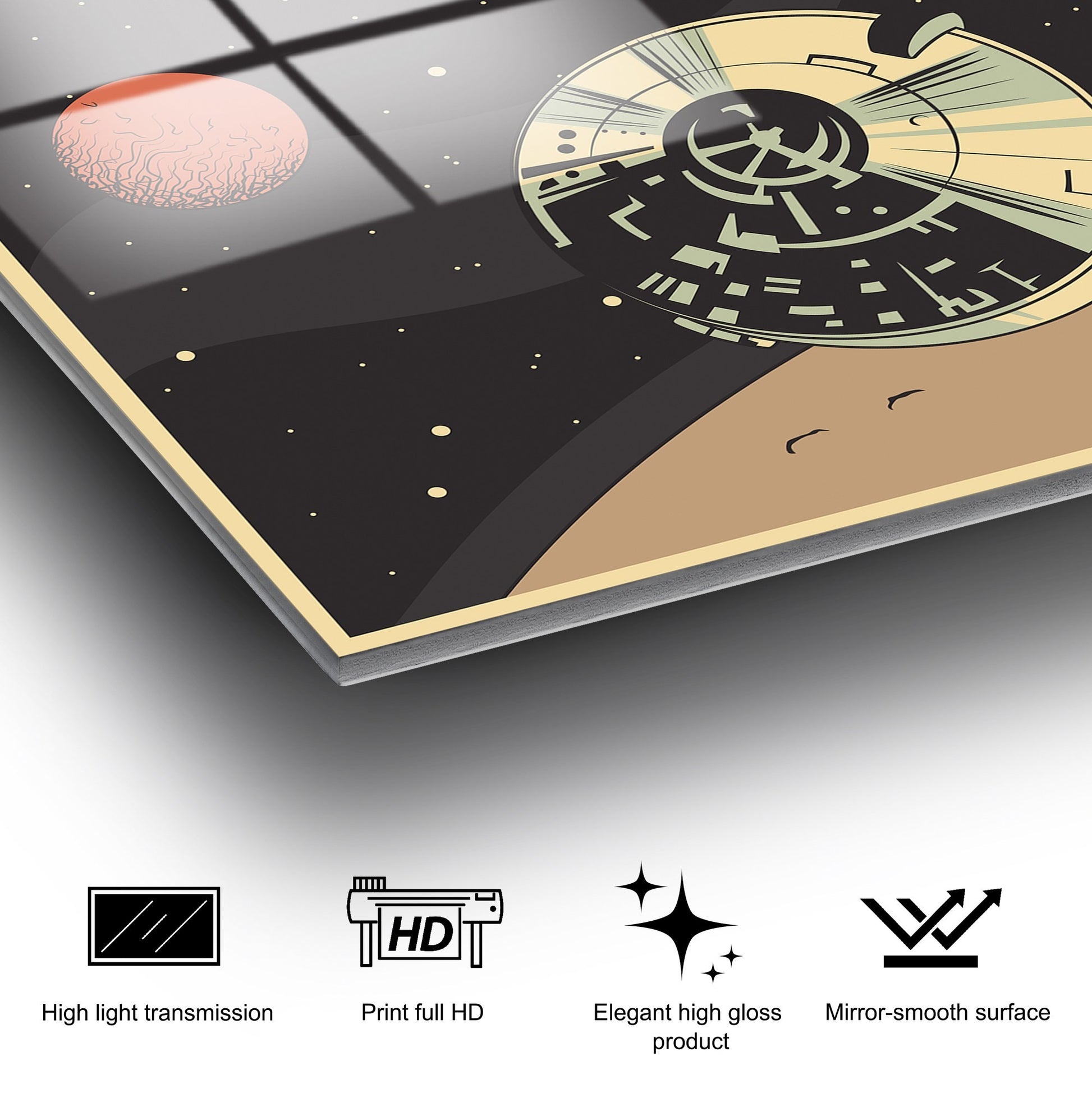 O vidro temperado oferece uma resistência até 5 vezes superior ao vidro comum, garantindo que a sua obra de arte permanece intacta por anos. A tecnologia UV-955 assegura cores vivas e duradouras que não desbotam com o tempo.