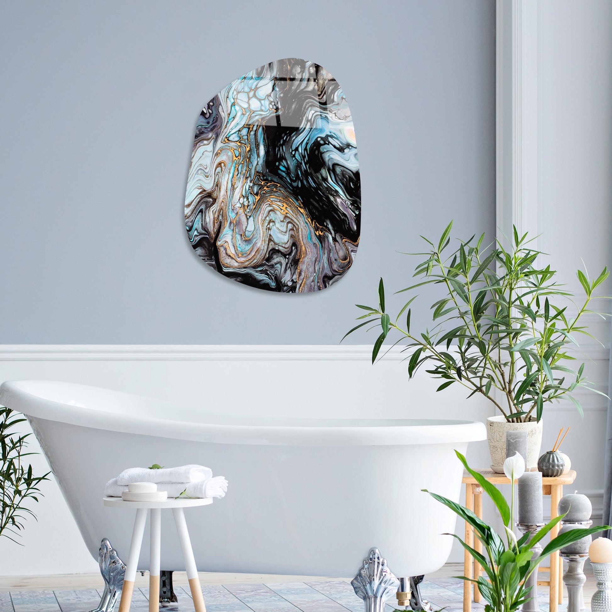 Transforme o seu espaço com elegância e sofisticação! Este magnífico quadro decorativo em vidro temperado combina arte contemporânea com a durabilidade excepcional do vidro temperado de alta qualidade.