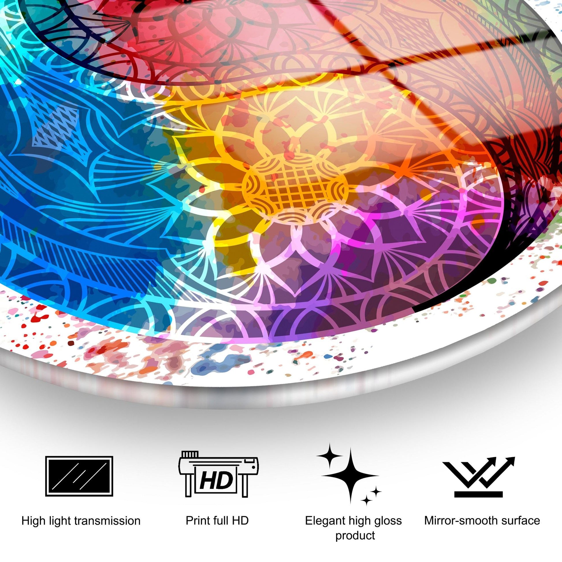 Quadro Decorativo em Vidro Temperado UV-1159 — Multicolor, Ø30 cm, 4 mm