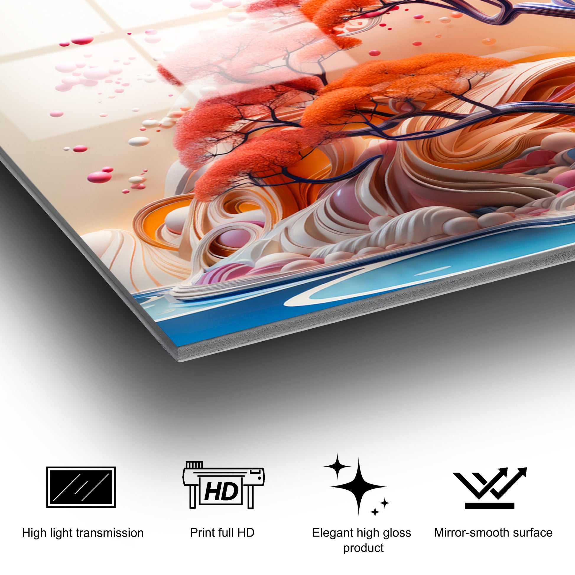 Este não é apenas um quadro – é uma declaração de estilo. O vidro temperado oferece uma luminosidade única que realça as cores multicolor, criando um efeito visual dinâmico que muda consoante a luz ambiente. Perfeito para salas de estar, quartos, escritórios ou qualquer espaço que necessite de um toque de sofisticação contemporânea.