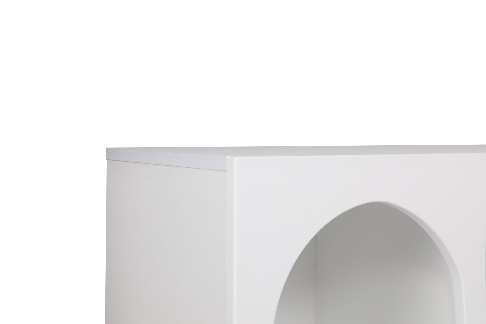 Construída com materiais premium de 100% melamina sobre aglomerado de partículas e portas em MDF de alta qualidade, esta console garante durabilidade excepcional e um acabamento impecável. A sua espessura robusta de 18 cm confere-lhe uma presença marcante, enquanto o tom branco atemporal adapta-se harmoniosamente a qualquer estilo decorativo, do minimalista ao clássico contemporâneo.