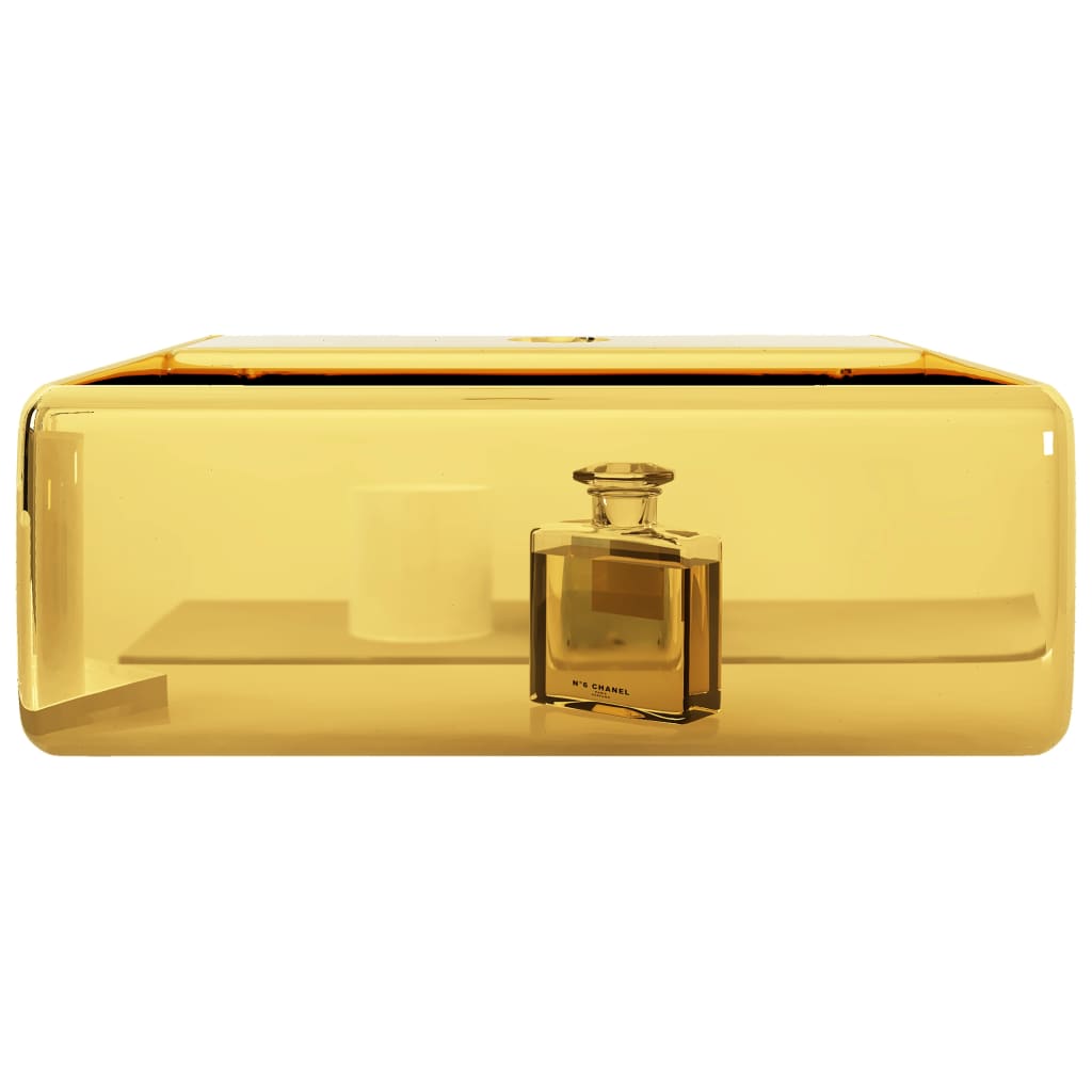 Lavatório c/ orifício torneira 38x30x11,5 cm cerâmica dourado
